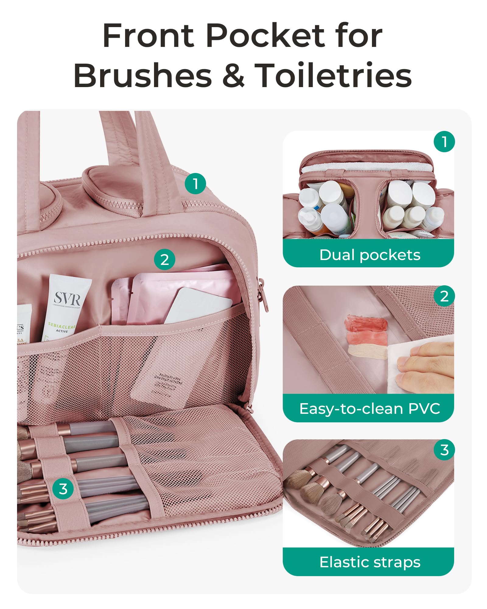Easy Access and Keep Upright : Full opening and not piling up for easy access to items. Double side full open design of travel bag keeps cosmetic bottles and toiletries can stand upright in the middle compartment. Avoid leakage during transit