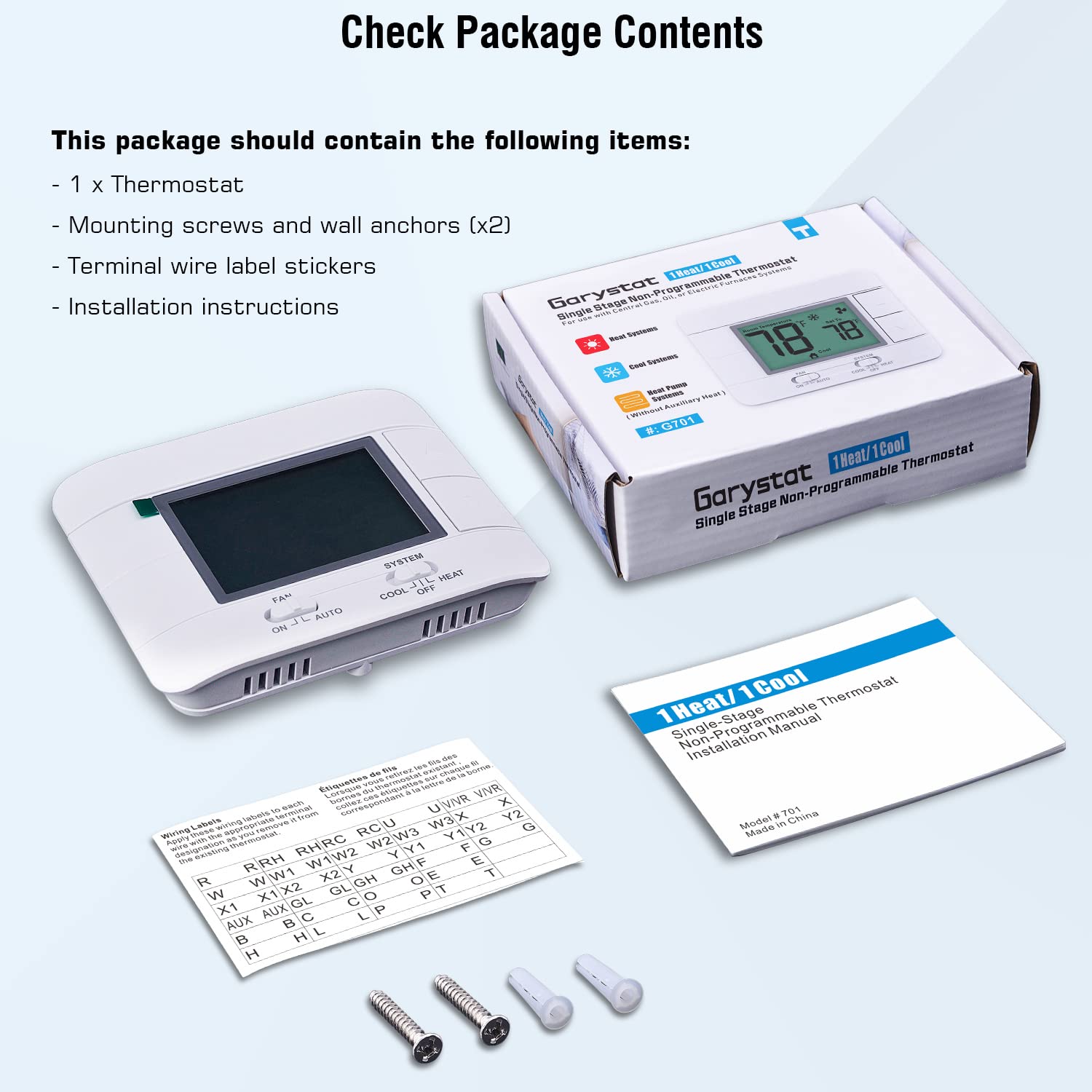 Upgraded Digital Non-Programmable Thermostat for Home 1 Heat/1 Cool Single Stage System, with Temperature & Humidity Monitor and Large Blue LCD Display