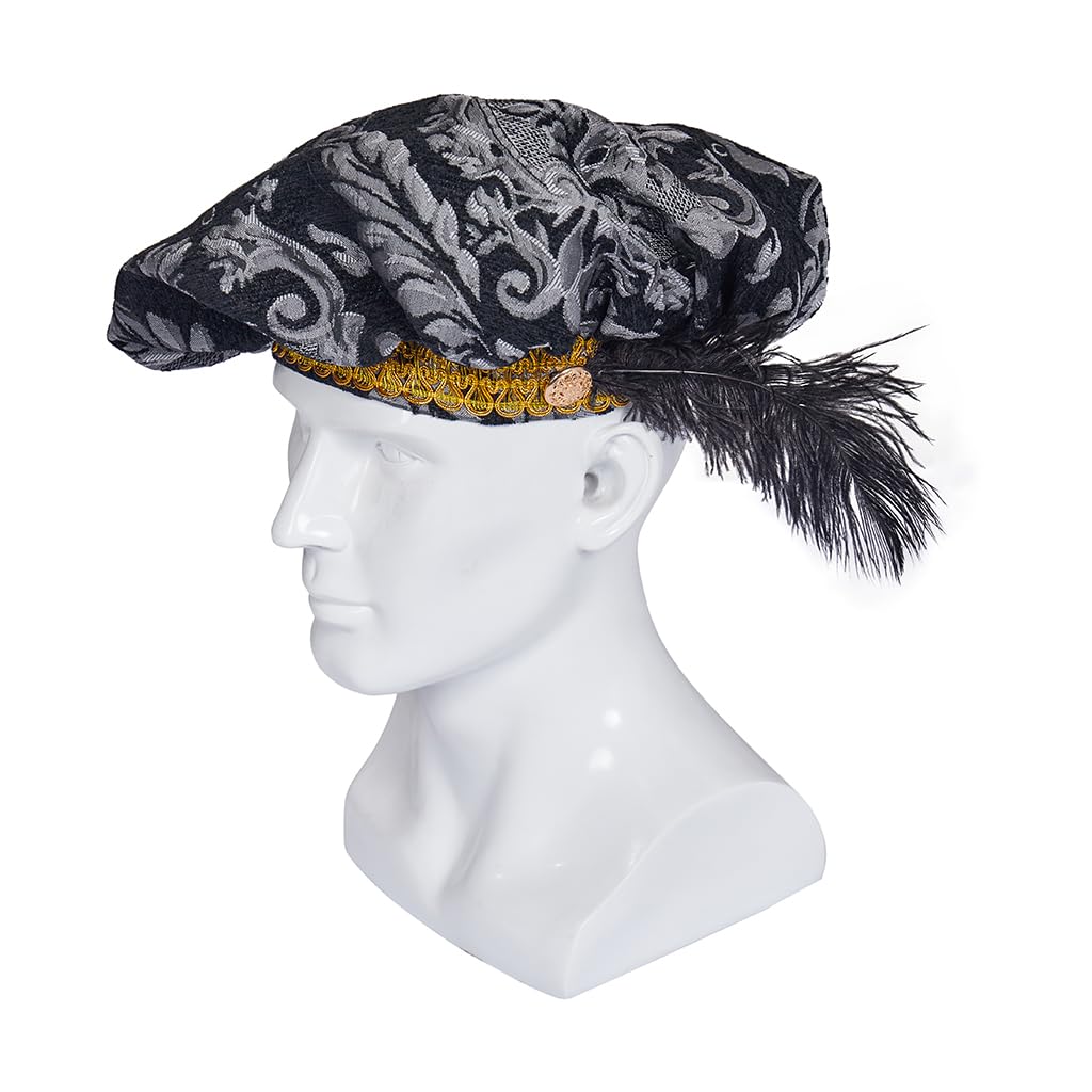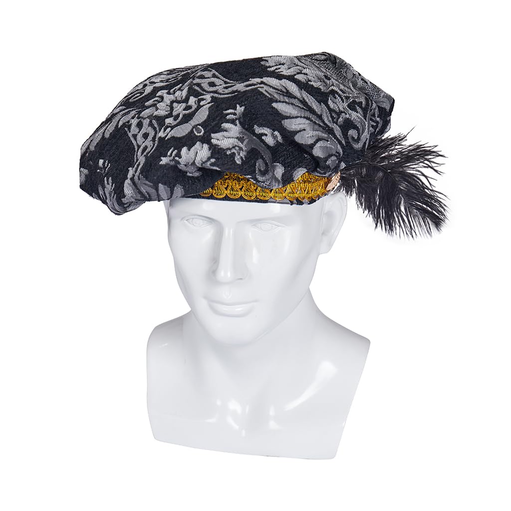 Mens Medieval Tudor Hat with Feather renaissance tudor flat cap for men tudor elizabethan renaissance men nobleman costume accessories hat cap headwear headpiece