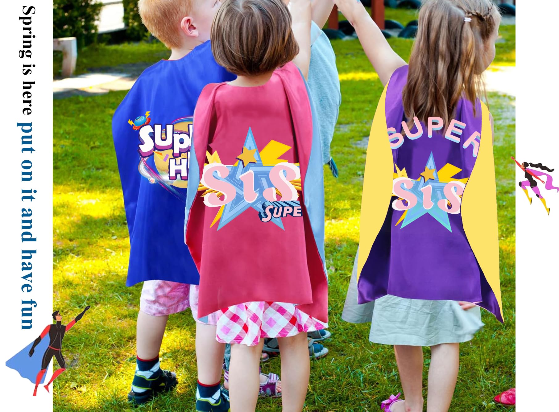 Description Shireake Baby Super Hero Capes Kids Halloween Party Superhero Costumes,Superhero Capes for kids with Mask Birthday Gifts Features: --Material:Satin --Imported --Velcro closure --It's time to make our princesses or prince Heroes ,This superhero cape and mask set designed with βSuper Broβ,"SUPER HERO" will give you a hand --One size 27.5 inches long x 27.5 inches wide,recommended for children aged 3+. --Velcro neck makes cape easy to put on and off Durable, double-sided satin cape and felt mask Best clothing for kidβs cosplay in birthday party, Halloween, Christmas day