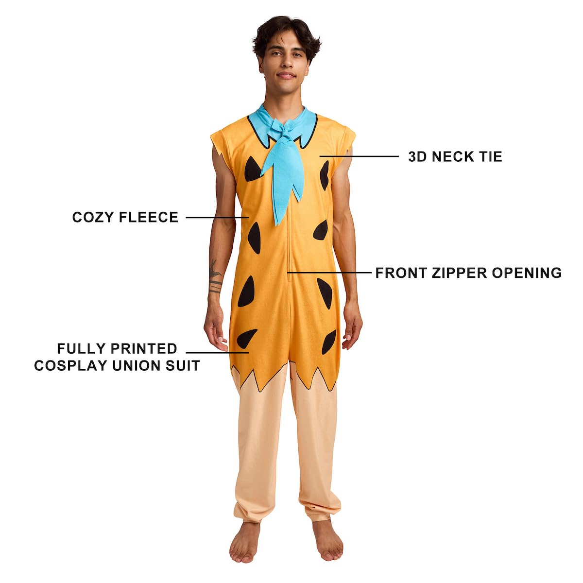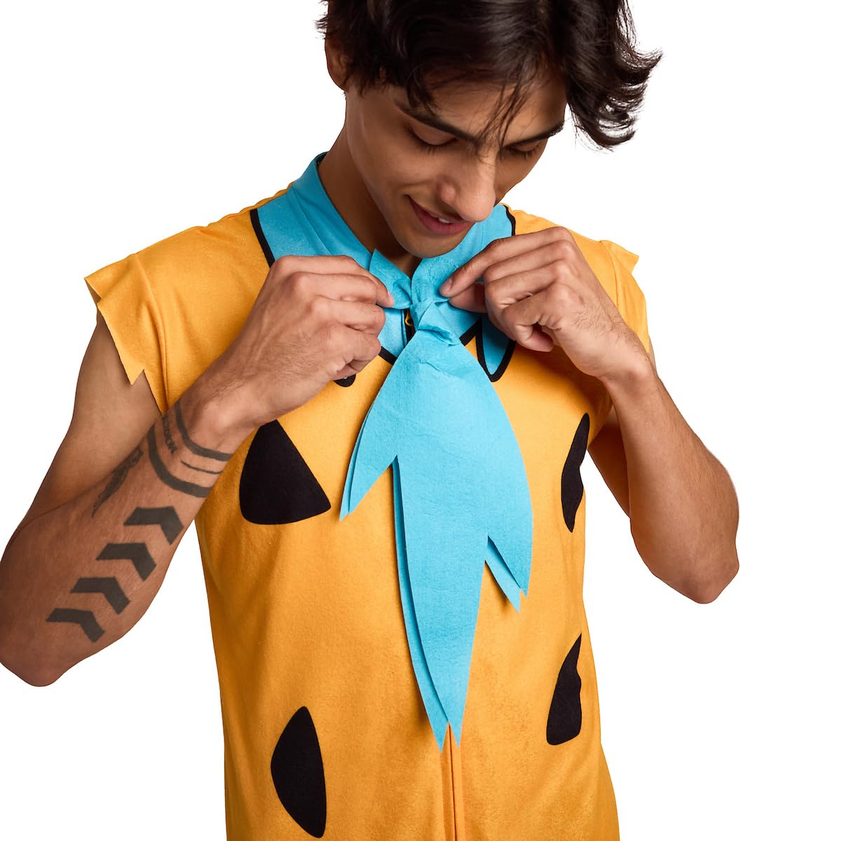 Custom Design: Displays Fred Flintstone’s tunic, printed legs and a 3D necktie for a fun, prehistoric style