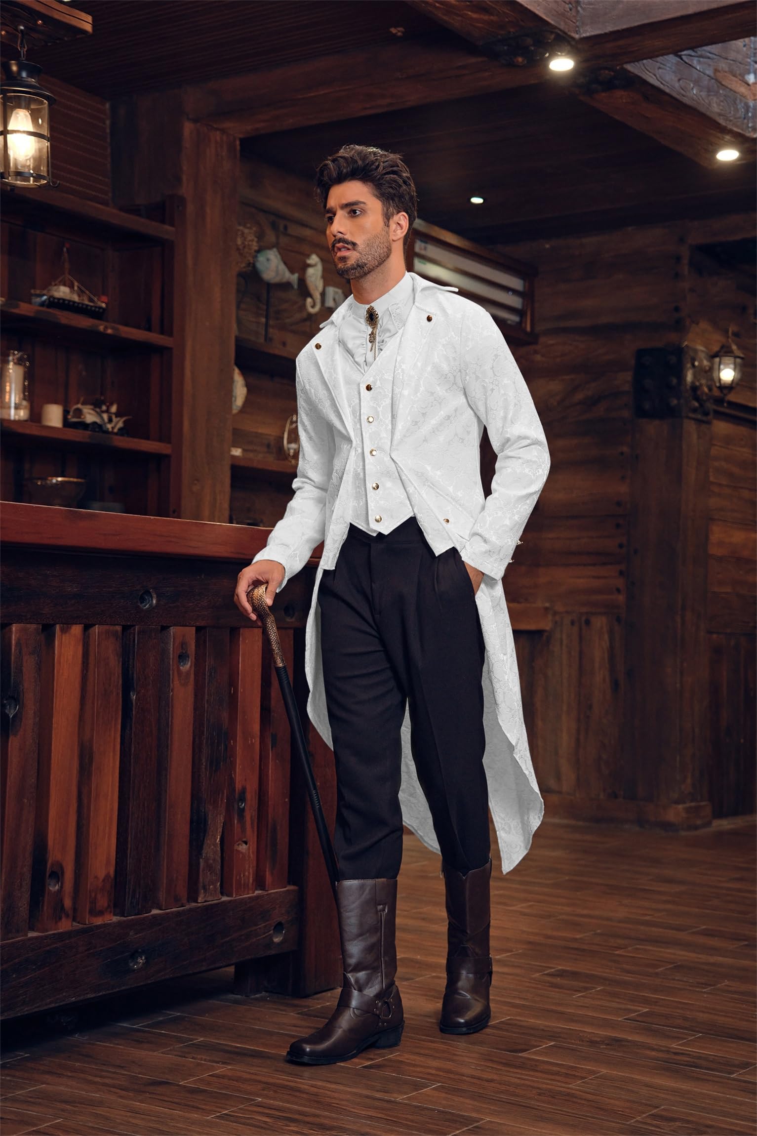 Our Mens Steampunk Medieval Jacket is suitable for dress-up events, party, wedding, ceremony, prom, banquet, dinner, theater, concert, dancing, cosplay, Halloween, renaissance medieval costume, stage performance, and more.