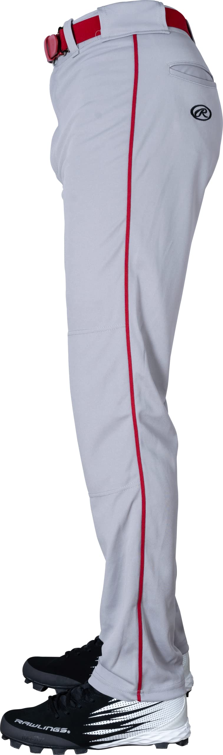 Description Rawlings Men's Belted 31 Cloth Fit Baseball PantsFeatures: * Crafted with medium weight polyester double knit fabric * Waistband with belt loops, snap closure and zipper fly provides ideal fit * Extra layer of fabric at knees for added abrasion protection when sliding * 2 set-in back pockets provide convenient place to stash batting gloves * Waist Size: S (28-30"), M (32-34"), L (36-38"), XL (40-42"), 2XL (44-46") * Inseam: S (31"), M (33"), L (33"), XL (34"), 2XL (34") * Semi-relaxed fit * Material: 100% polyester