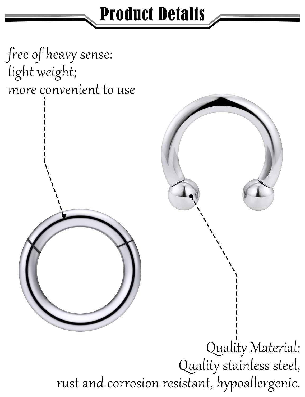 Horseshoes Captive Bead Rings Made of 316L Surgical Steel,High Qaulity.Non Nickel and Lead,Safe and Health for Body, Comfortable to Wear.