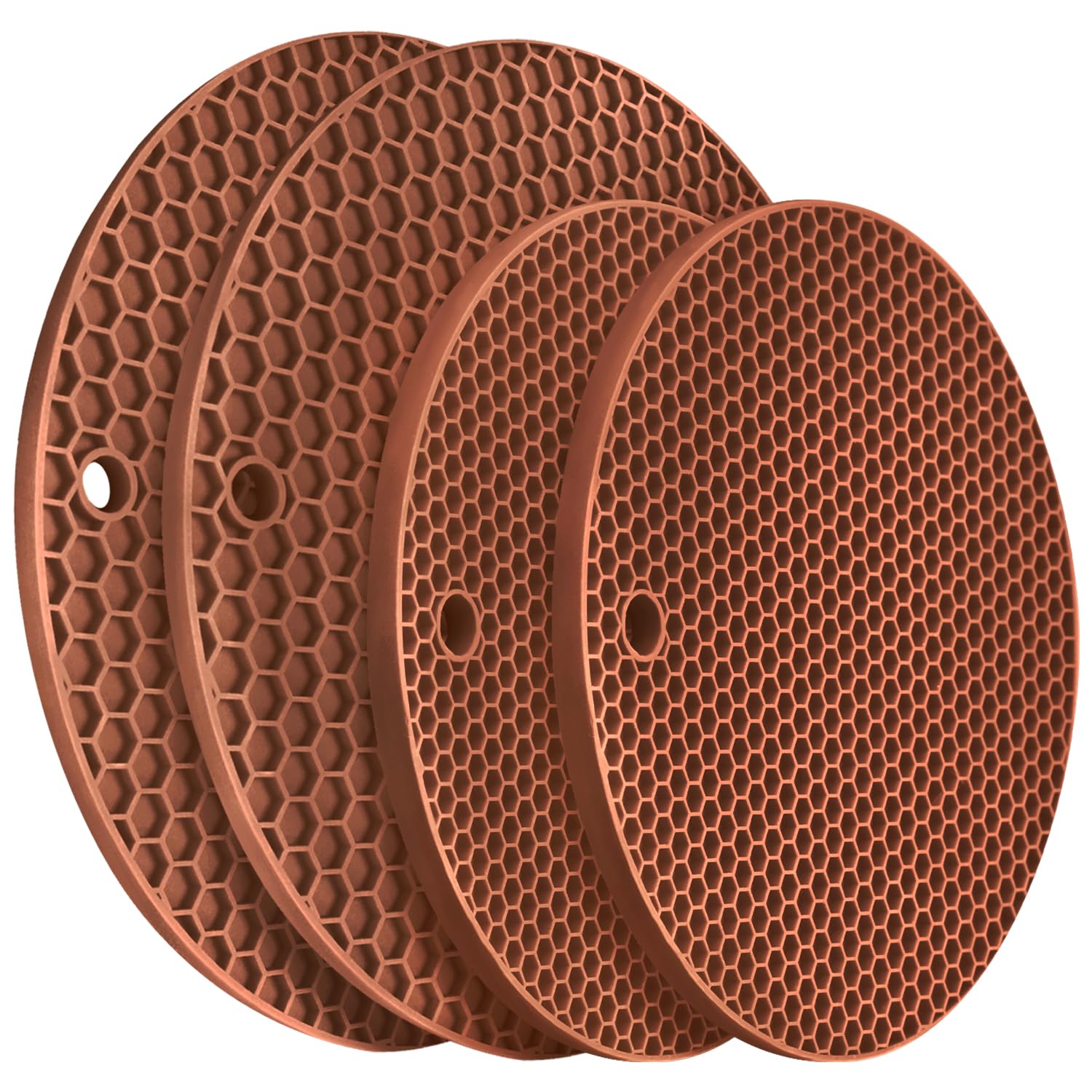 🎯 FOOD-GRADE SILICONE MAT - Our brown silicone potholders for kitchen are made of 100% BPA-free food-safe silicone; durable and sturdy. This silicone trivet mat won’t break and won’t scratch the table surfaces. Slip-Resistant, and flexible enough to comfortably grab a hot dish.