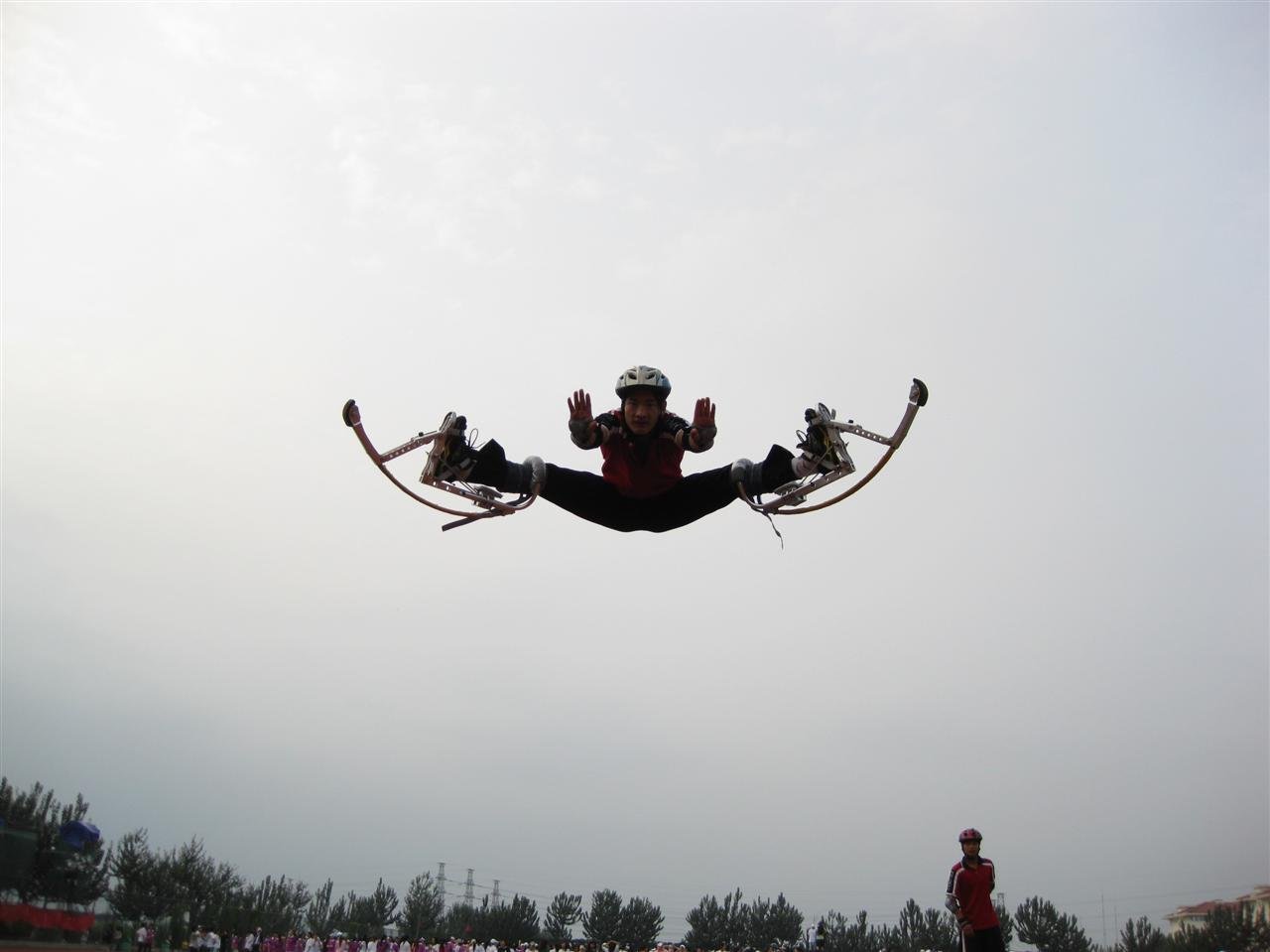 Description Skyrunner is defined mainly by a flat spring controlled upon deformation, so that the result is a straight movement relative to the ground. With the riser's functional principle, depressive spring characteristic and backward movement of the force point during deformation are achieved. This supports the natural force point movement in the heels direction at higher loads and allows the runner to transpose his optimal jumping energy. Hence, you can really fly! Skyrunner is recommended... A. Incredible experience through exciting sports is never seen before in the entertainment world. B. Cultivate the new sprit of adventure to young people. C. Train child's mind and body who is worn out by hard study or on-line game. D. Good for loosing weight (by reducing fatty deposit, waistline, buttocks, calf diameter) and physical exercise. E. Increase HDL-C(High Density Lipoprotein Cholesterol) and reduces THR(Total Cholesterol & High Density Lipoprotein Cholesterol Rate) F. Build up the lower torso Effect A. Stress killer. Sporting activity removes stress. - but attention: Don't exercise too much, because also that may produce stress. Relax and do your open air laps with the Skyrunner and vary the intensity as you like. Soon your mind became clear again and you will have free capacity for the essential things of your life. B. Time saving. To fight effectively against stress normally you would need a regular and time demanding training! These times have gone by! With the Skyrunner the stress reducing effect happens yet after only 5 minutes. You will be enthusiastic and relaxed in no time! C. Increase enporphins. With the Skyrunner that happens yet after only 3 minutes. Your motivation will increase enormously. D. Good for loosing weight (by reducing fatty deposit, waistline, buttocks, calf diameter) and physical exercise. E. Increase HDL-C (High Density Lipoprotein Cholesterol) and reduces THR (Total Cholesterol & High Density Lipoprotein Cholesterol Rate).