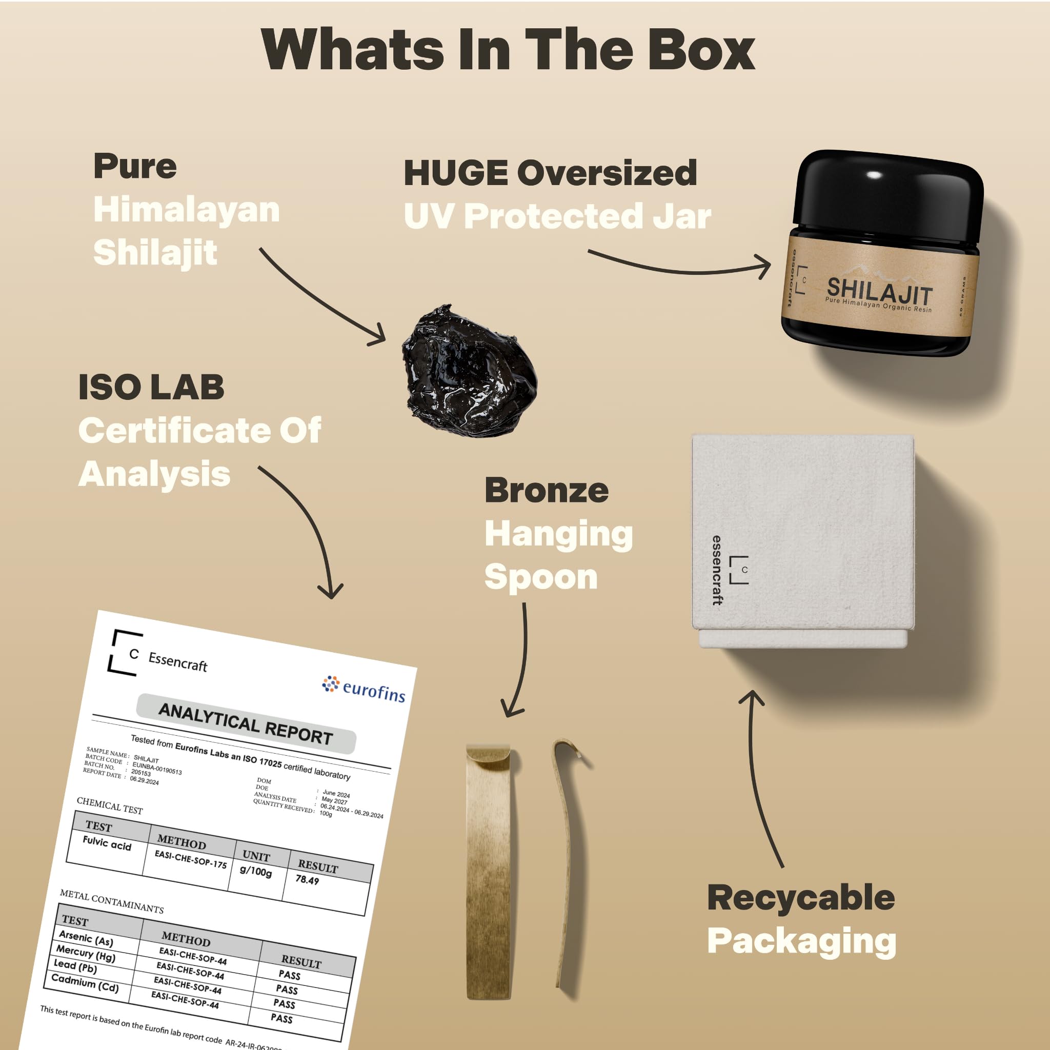 Non-Chemical Extraction – 3rd Party Tested by a world-leading laboratory. Free from heavy metals, fillers, and contaminants and packaged in a UV-protected jar. Essencraft Shilajit sets the benchmark for shilajit supplements
