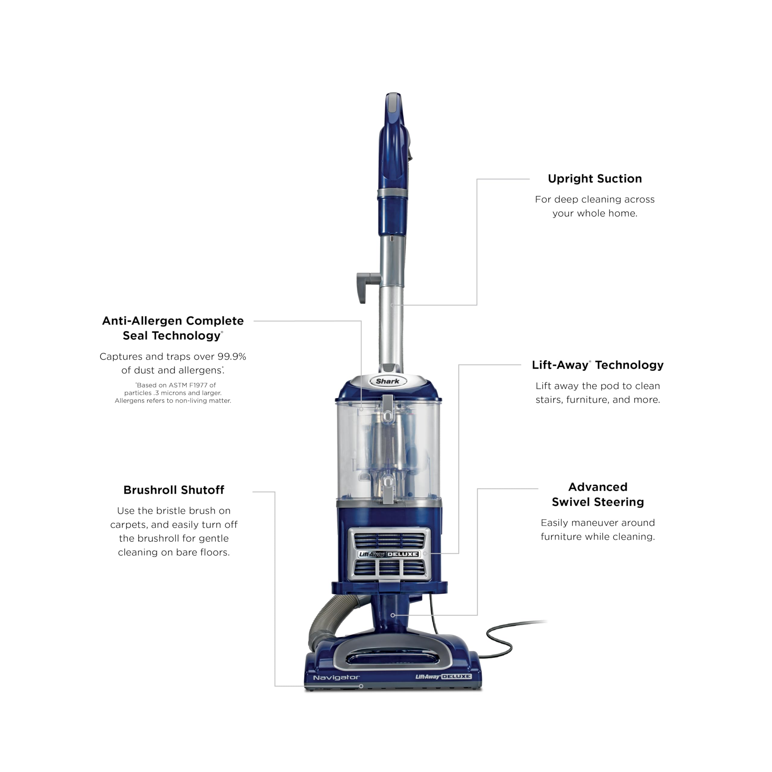 WHAT’S INCLUDED: Navigator Lift-Away Deluxe Upright Vacuum, Upholstery Tool & Crevice Tool. Rinse filters under running tap water until the water runs clear. Squeeze filters and let air dry for 24 hours before replacing. Do not wash in dishwasher or washing machine.