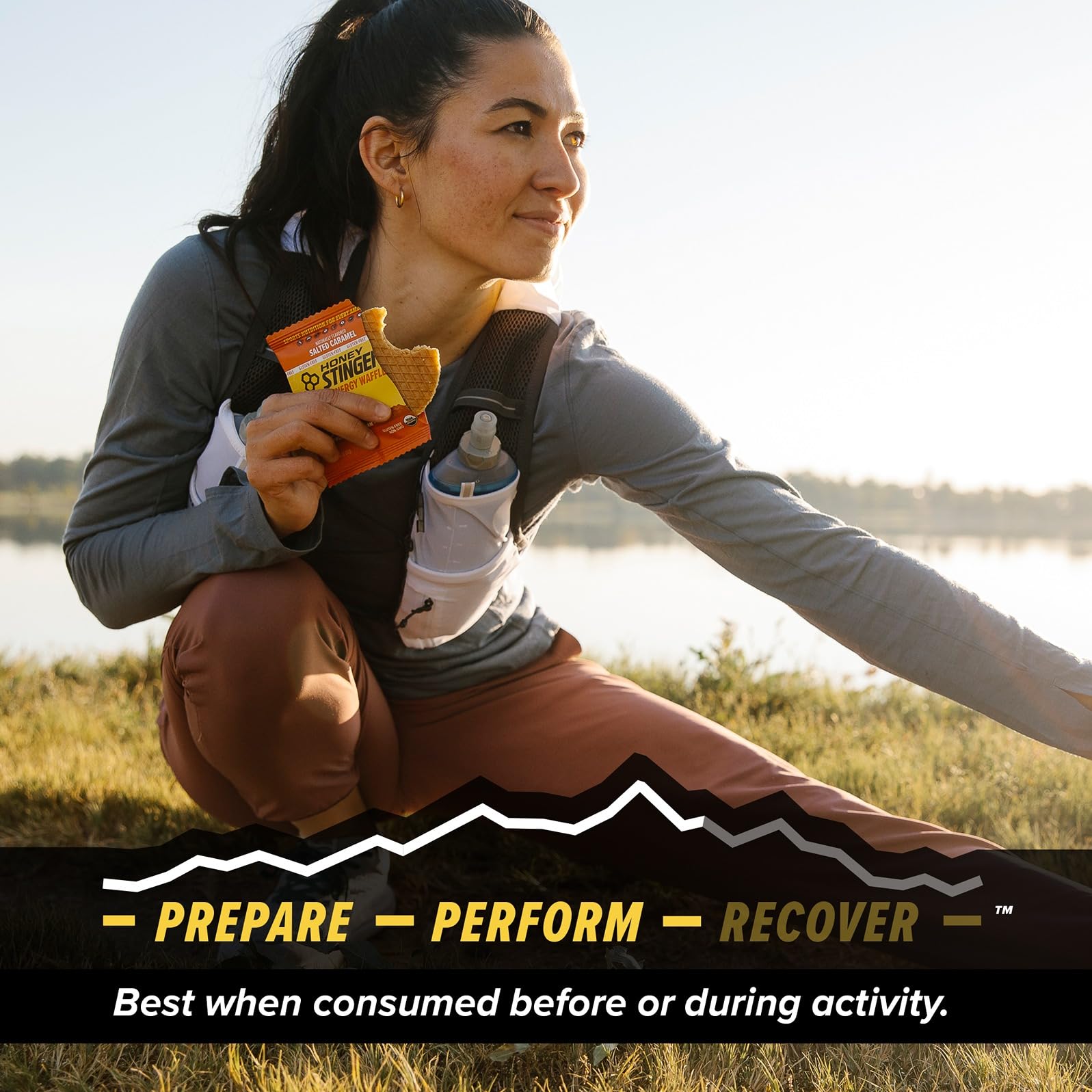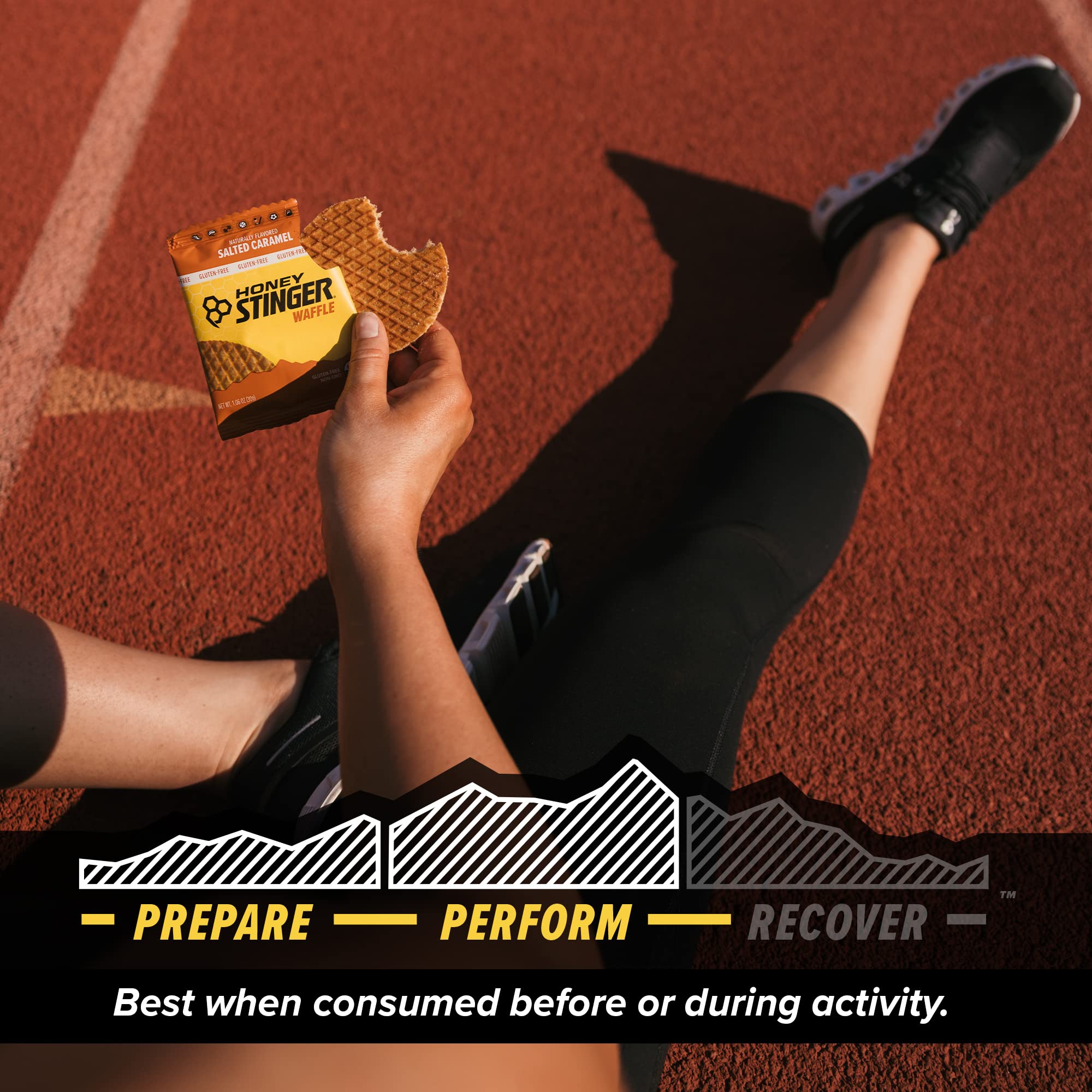 RACE-READY The waffle designed for performance. Both portable and easy to digest, it’s the perfect snack to throw in your gym bag or take with you while running and biking, or to scale up your home gym workouts