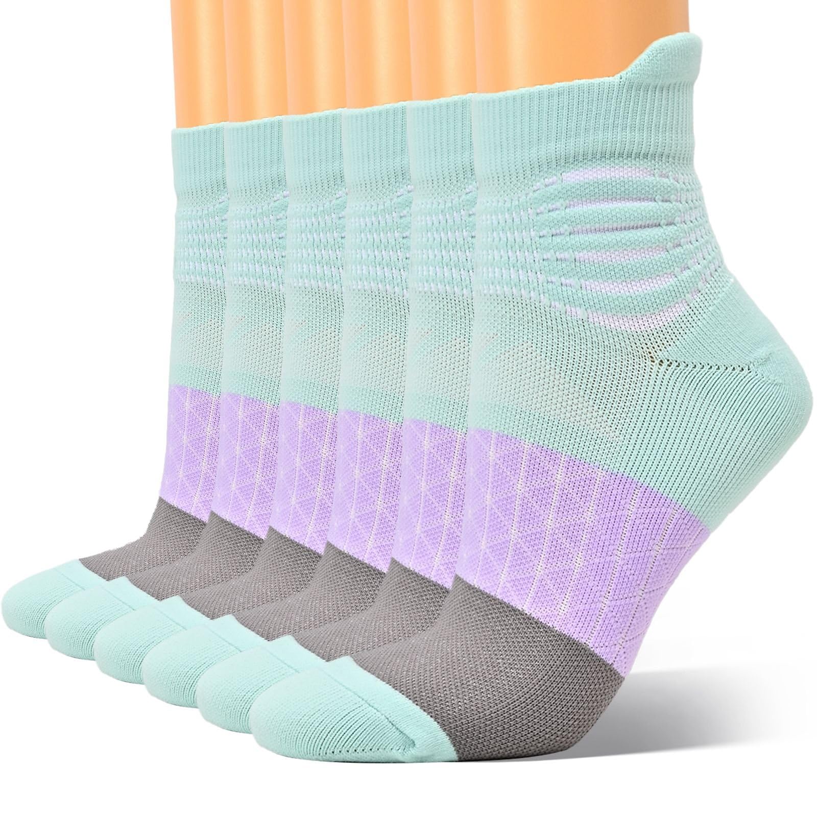 Coolmax material with nylon mesh ventilation provides quick moisture-wicking and sweat release, reducing heat and sweat, keeping your feet fresh, dry, and breathable all day. Plus, the odor-free feature eliminates bad smells caused by long-time wear or intense activity. Reinforced heel and toe areas withstand rigorous workouts and multiple washing.