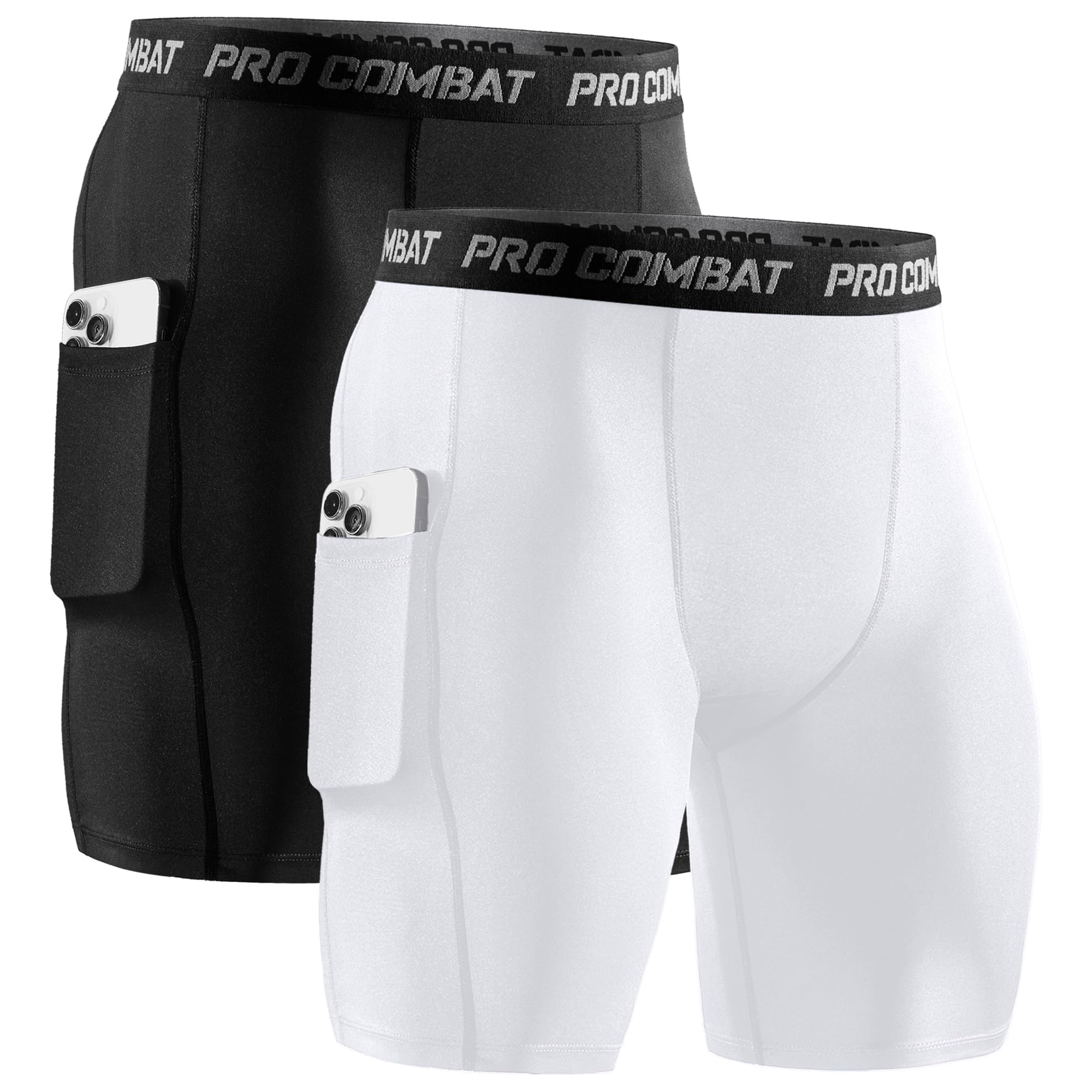 【Ripstop Elastic Waistband】Compression shorts men with pocket are designed with a wide waistband for a better fit around the waist, bringing a comfortable wearing experience as well as non-slip and non-deformation. The tear-resistant design of the waistband is durable.