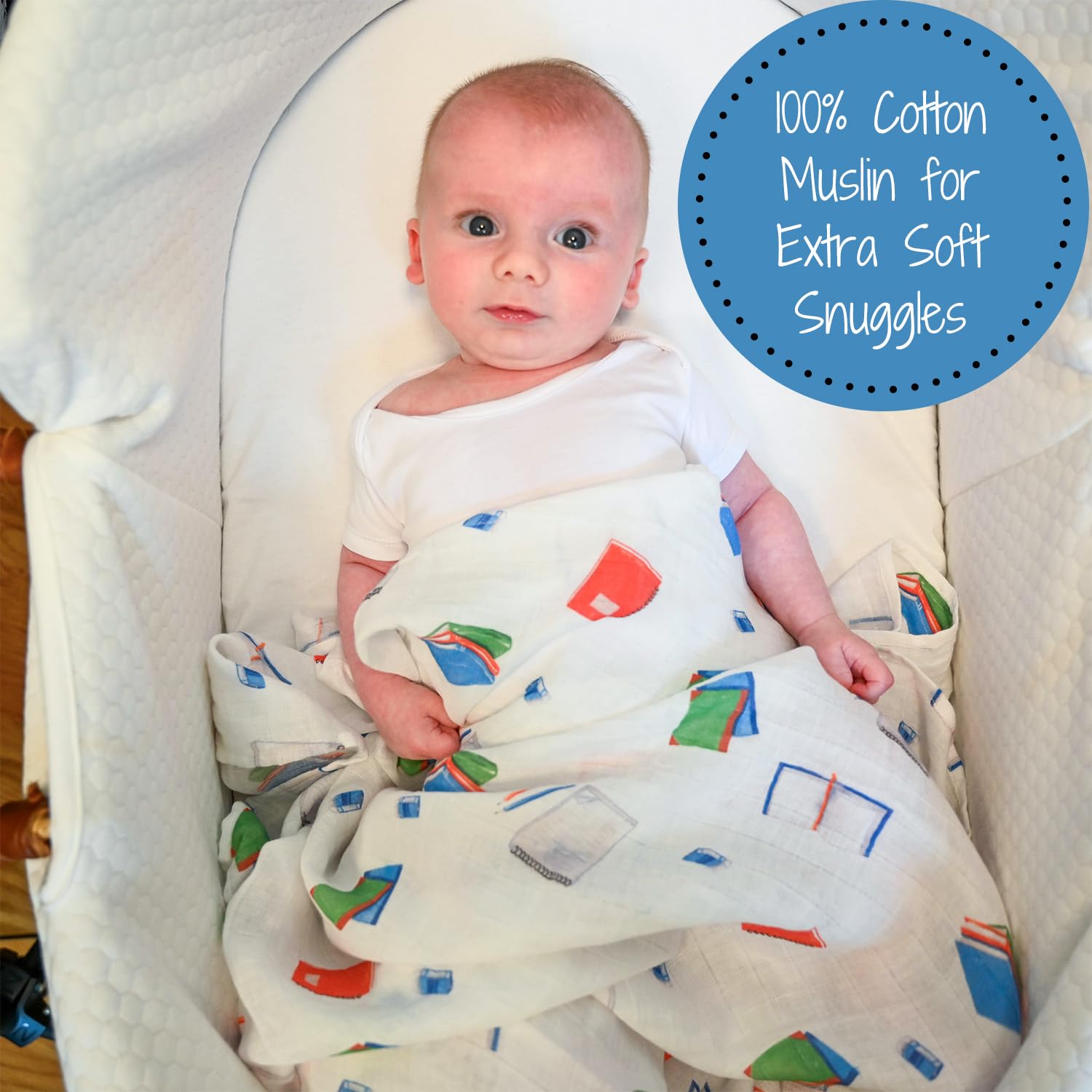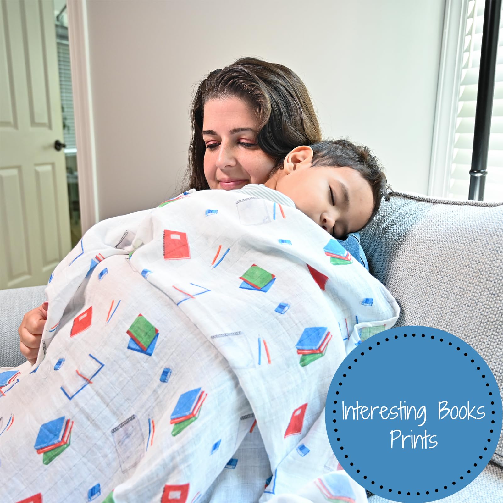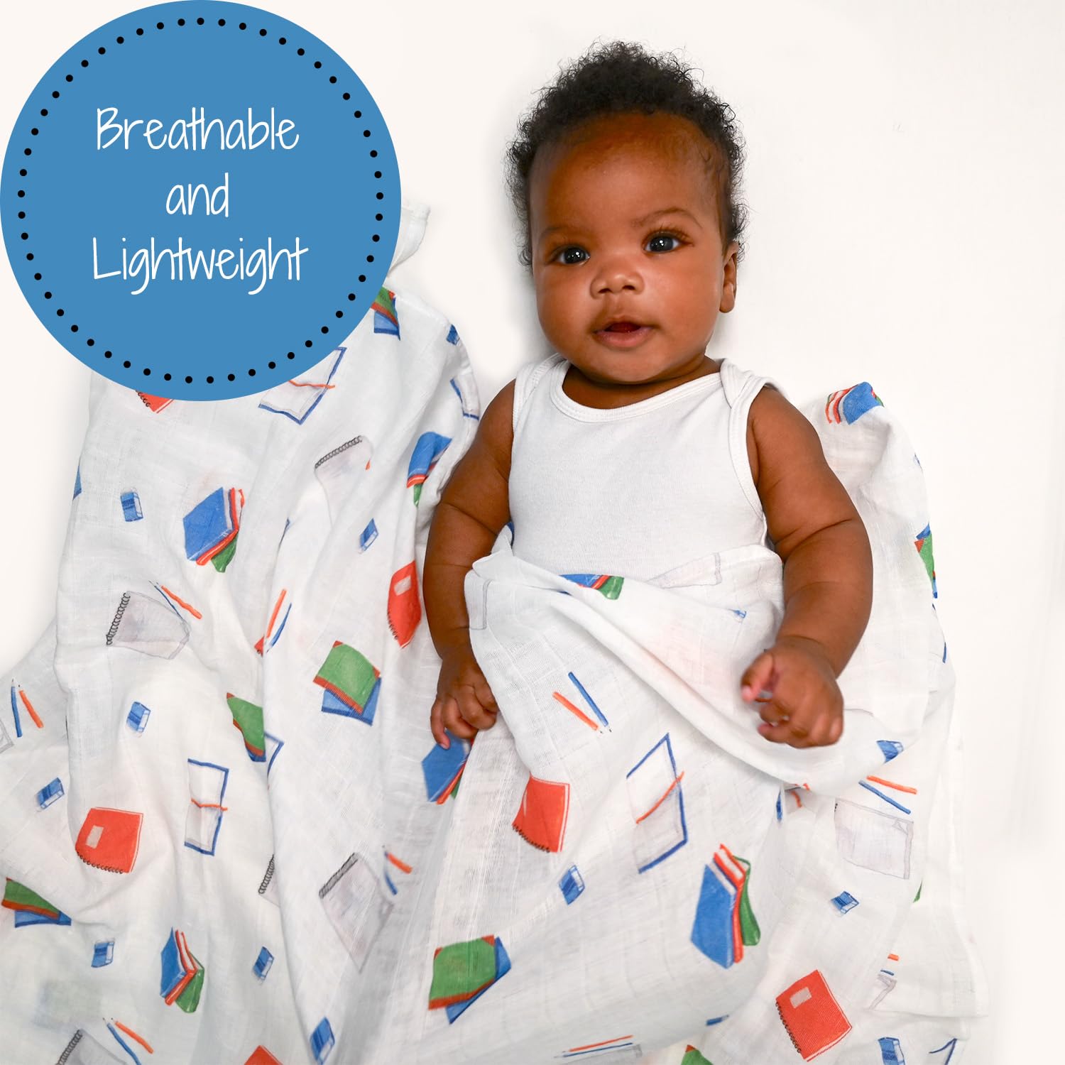 ADORABLE BOOKS PRINT - Wrap your baby in comfort with our muslin swaddle blanket featuring the adorable Books print. It offers breathability and softness, perfect for sensitive skin. Moms and dads will love receiving these as a baby shower gift or welcome present.