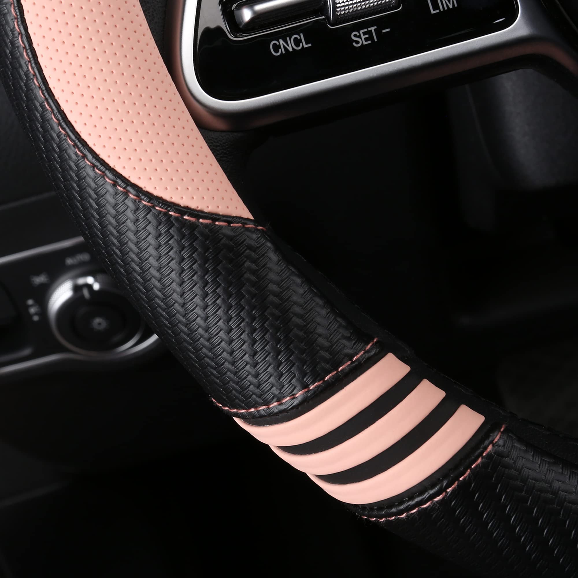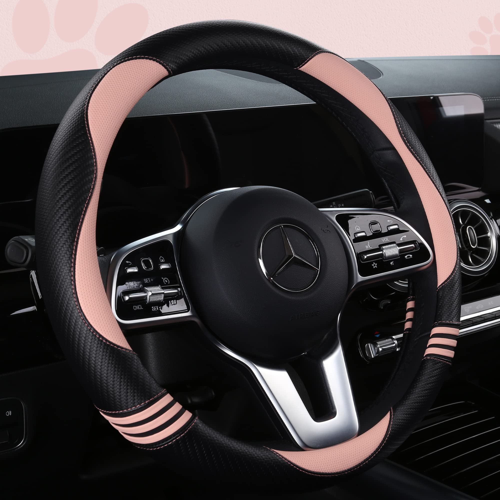 ♛【Easy To Install】- Durable & easy to install, just align the cover on the top of the steering wheel, then pull tight the cover from top to the side, then two side to bottom. Twist the cover and adjust it.