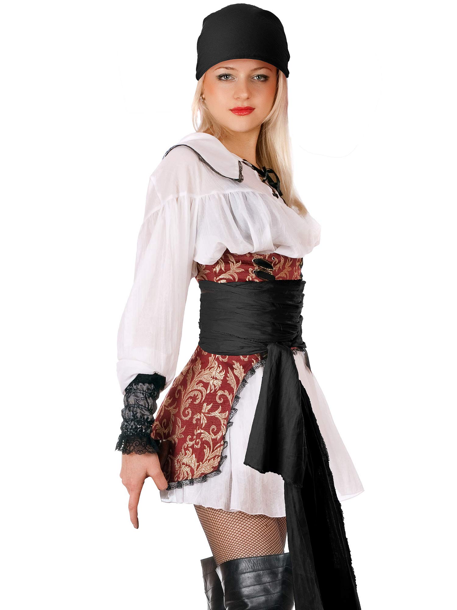 Package includes: 1 piece pirate bandana and 1 piece pirate large sash