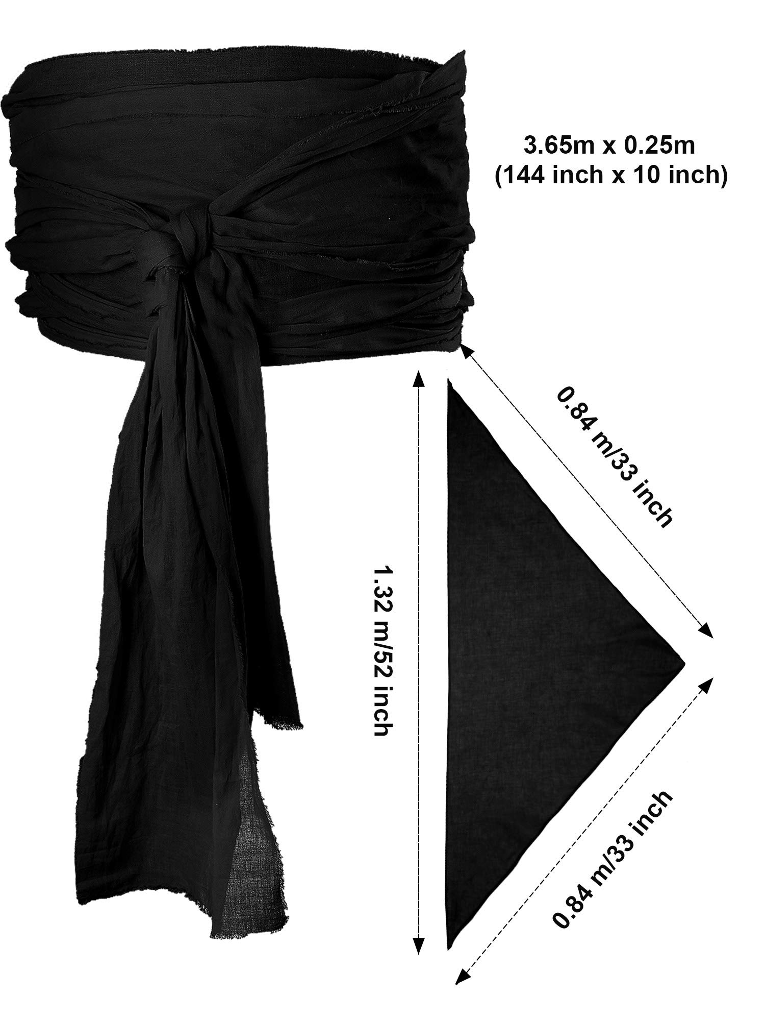 Size: pirate bandana: approx. 33 x 52 x 33 inch/ 83.82 x 132.08 x 83.82 cm; Pirate large sash: approx. 144 x 10 inch/ 365.76 x 25.4 cm; Please make sure the size before you buy it