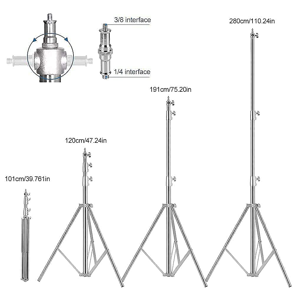 Included 1/4-inch to 3/8-inch Universal Adapter is applicable to most photographic equipment; Note: Light stand only; Others are not included