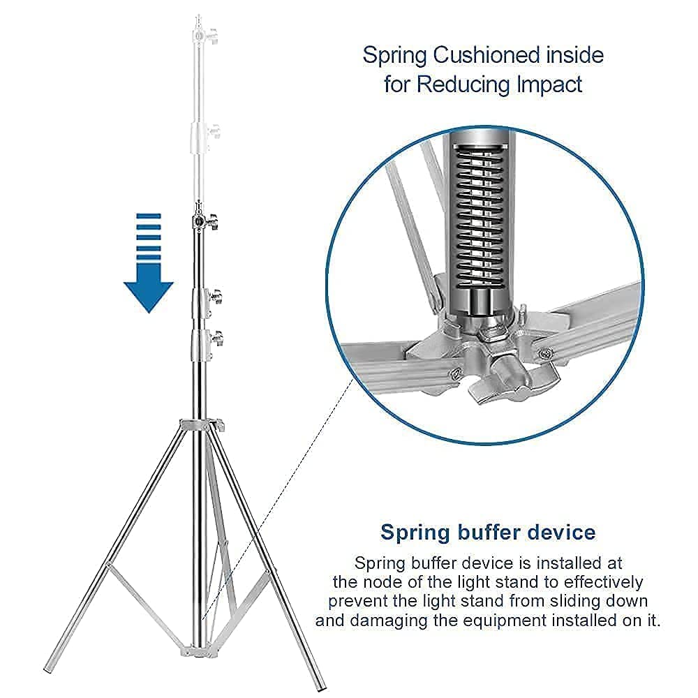 Spring buffer device: Spring buffer device is installed at the node of the light stand to effectively prevent the light stand from sliding down and damaging the equipment installed on it.