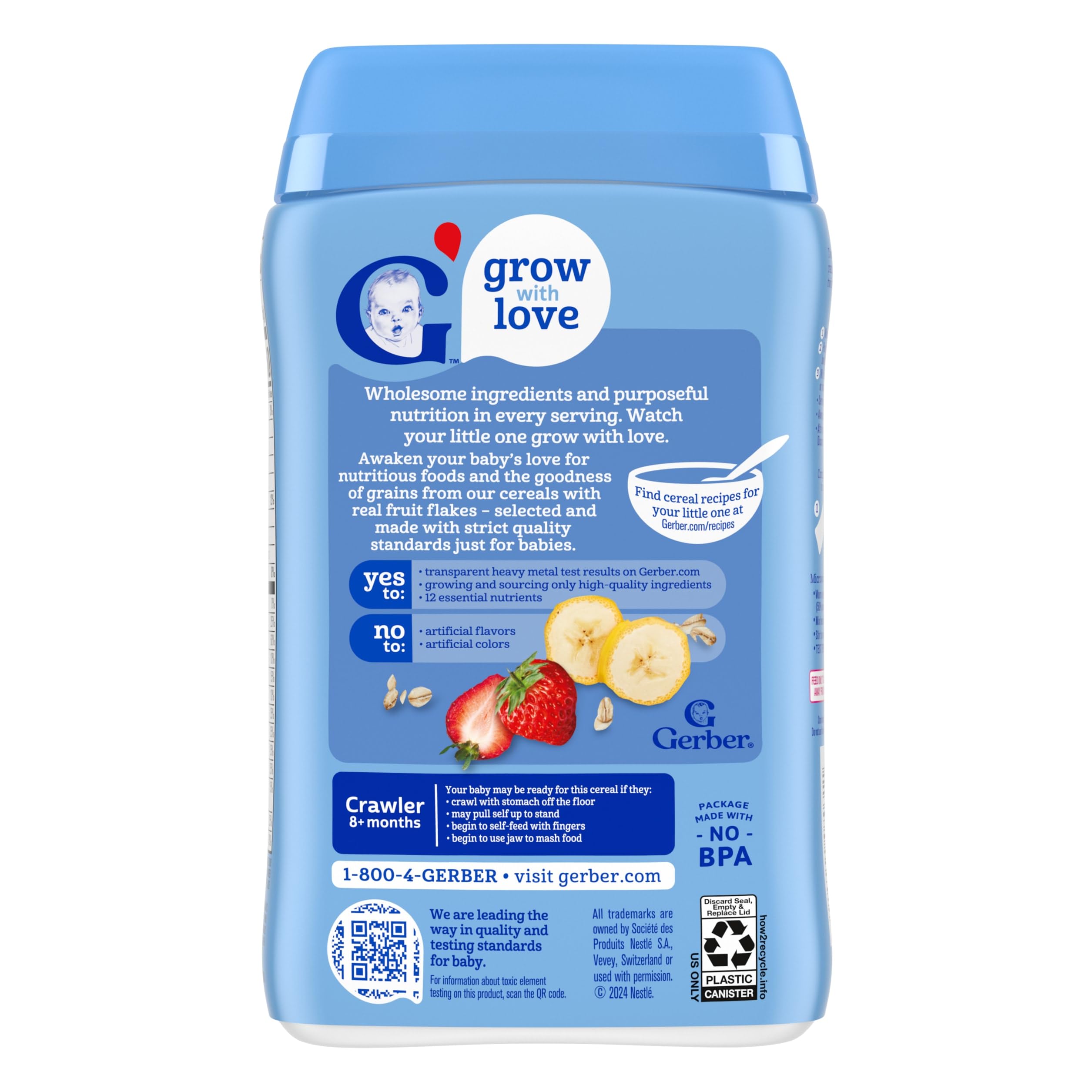 Gerber is the #1 Pediatrician recommended brand for Infant Cereals.* Made with wholesome ingredients and strict quality standards just for babies, Gerber Baby Oatmeal Cereal is an ideal choice for your little one. With its quick and easy preparation, this oatmeal banana strawberry baby cereal offers a convenient and nutritious solution for busy parents. Gerber understands the importance of providing nutritious foods as your baby grows and develops, that’s why our baby cereal has 12 essential nutrients. Our banana strawberry baby oatmeal has no artificial colors or flavors, and is a food you and your little one can feel good about. Gerber’s dedication to quality has been and always will be our highest priority. We're committed to being your partner in parenthood with quality ingredients, nutritious food & expert guidance. *Among pediatricians who recommend infant cereals.