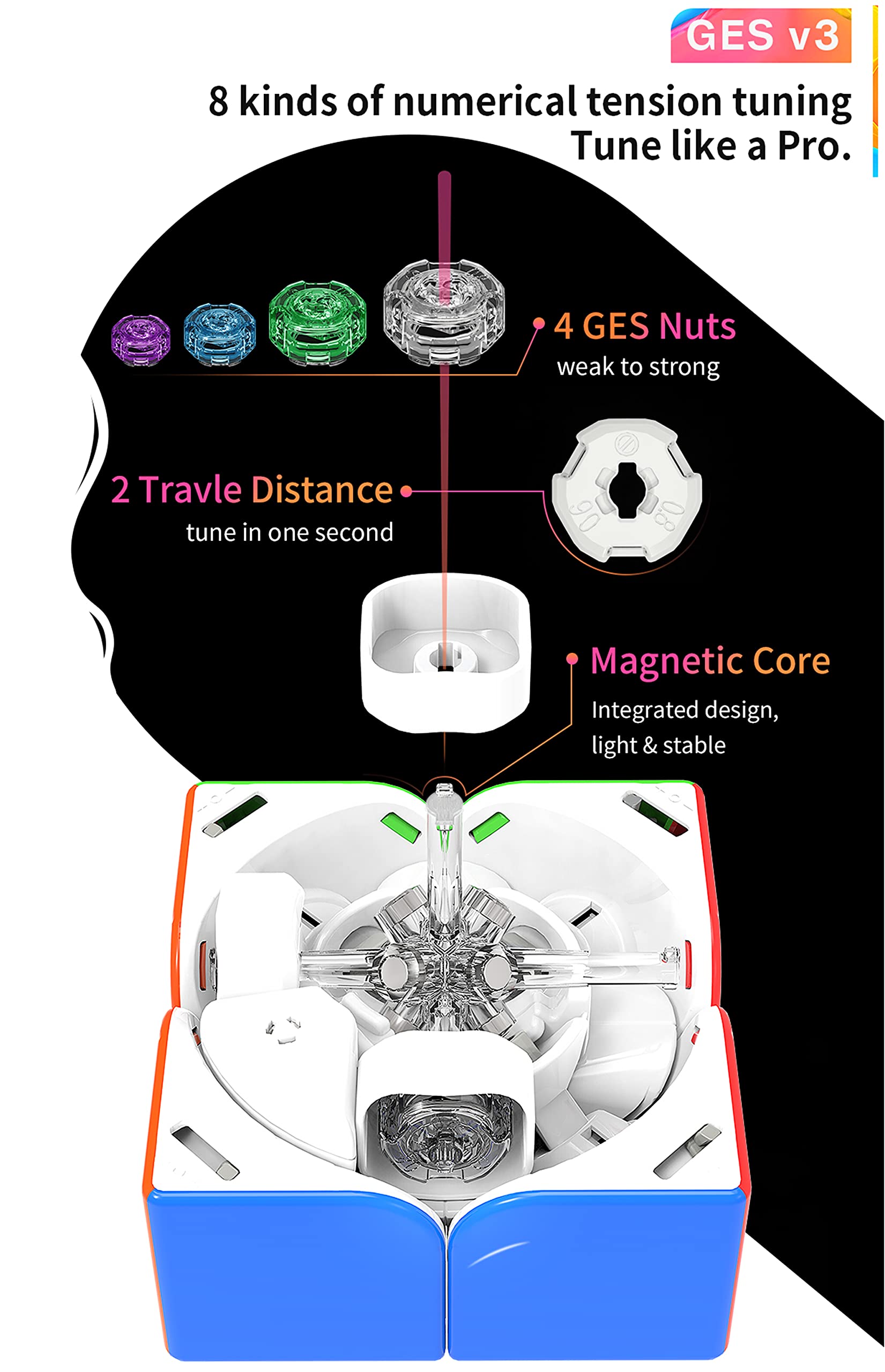 ✅EASY TO TUNE🛠- The GAN 251M Leap has GMS-V3 built in, which allow you to change the magnet strength without extra tools (Simply tune it by your fingers). Furthermore, you can change the tension nuts in seconds by using the extra GES Set. FANTASTIC!!!