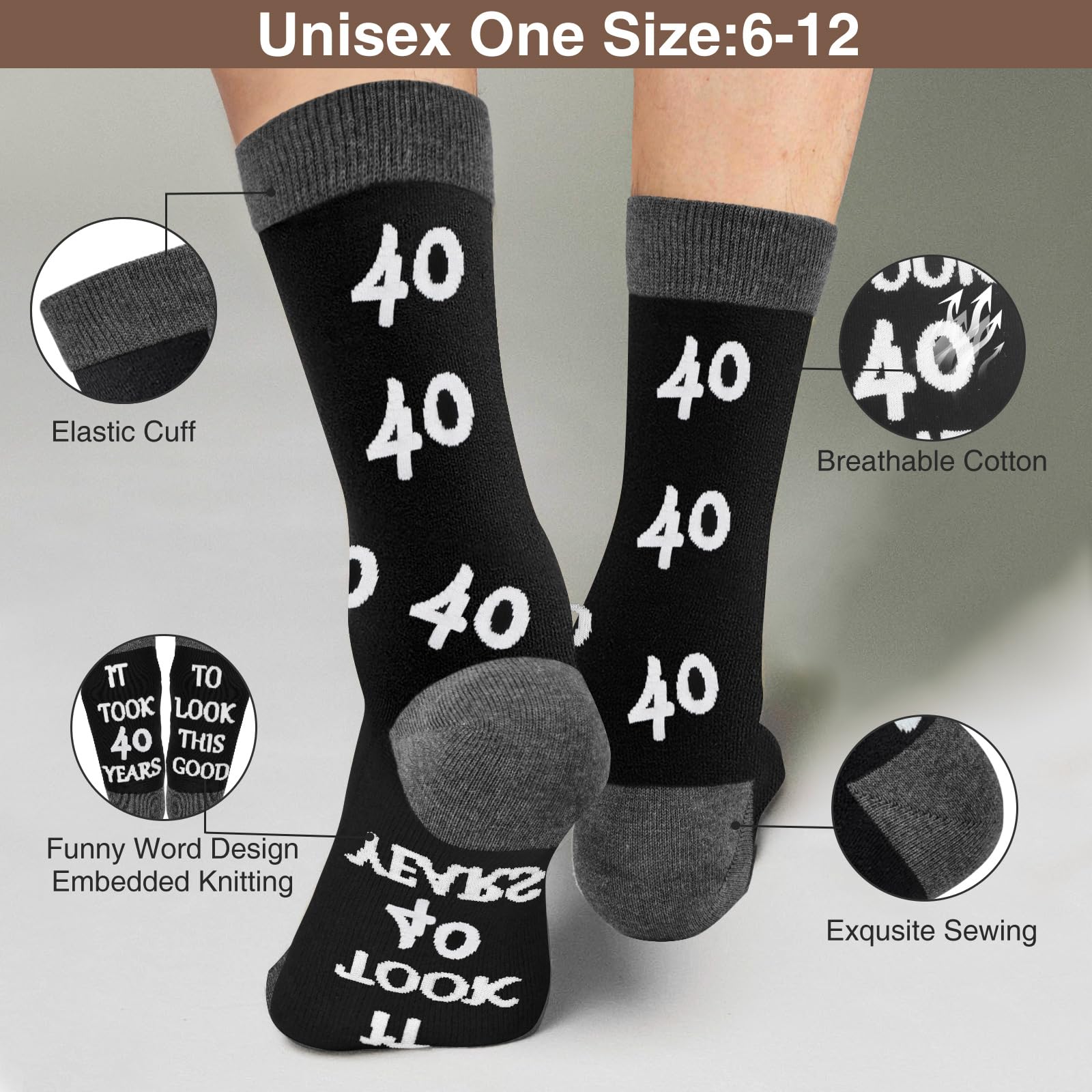 Size: These 40th birthday decorations men socks fit men's shoe size 6-12 and women's shoe size 7 and up (US size), suitable for most people.