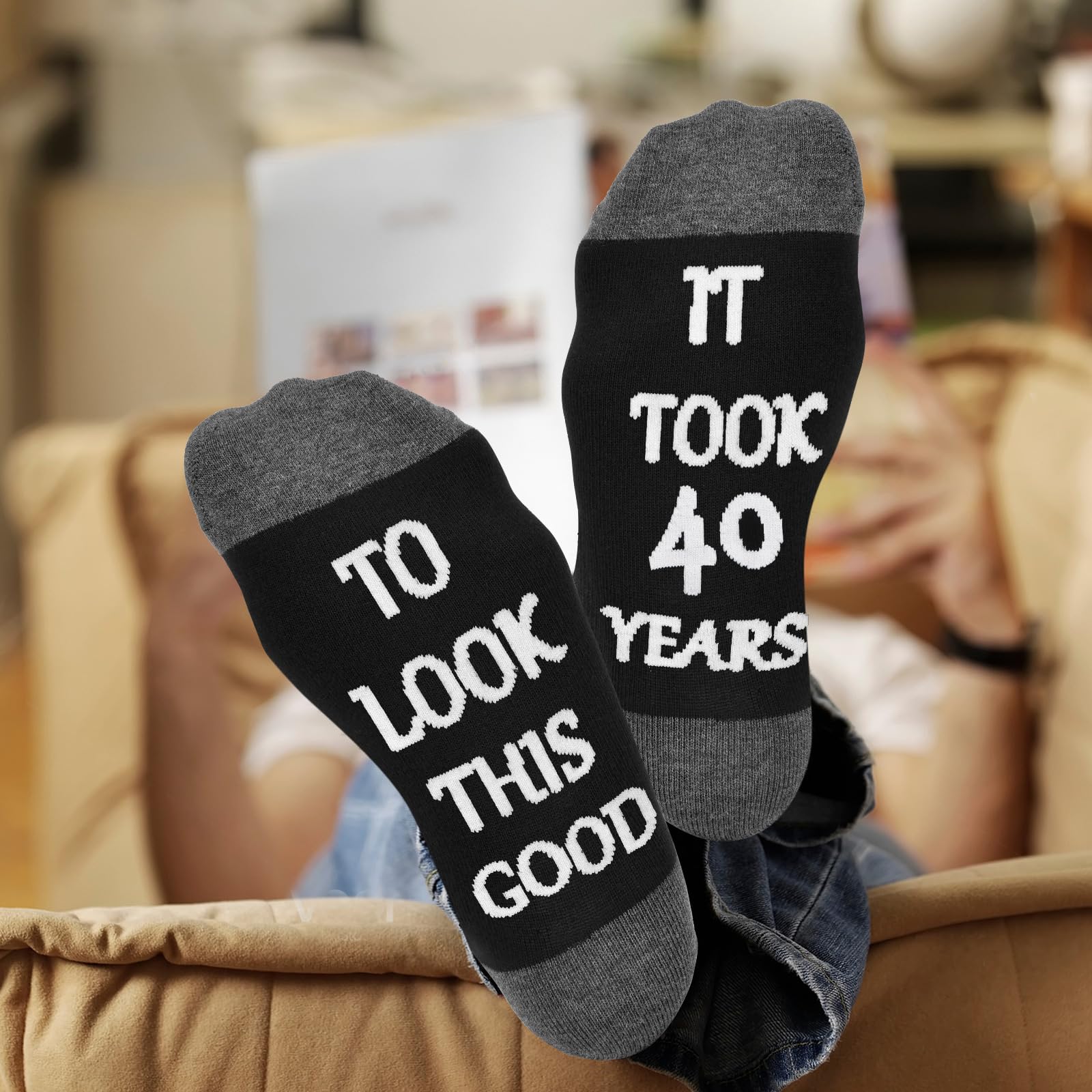 Unique Gift: Our 40th birthday gifts for him socks are printed with “IT TOOK ME 40 YEARS TO LOOK THIS GOOD” with funny and interesting content, which is an unforgettable gift for your husband, father, friends and so on.