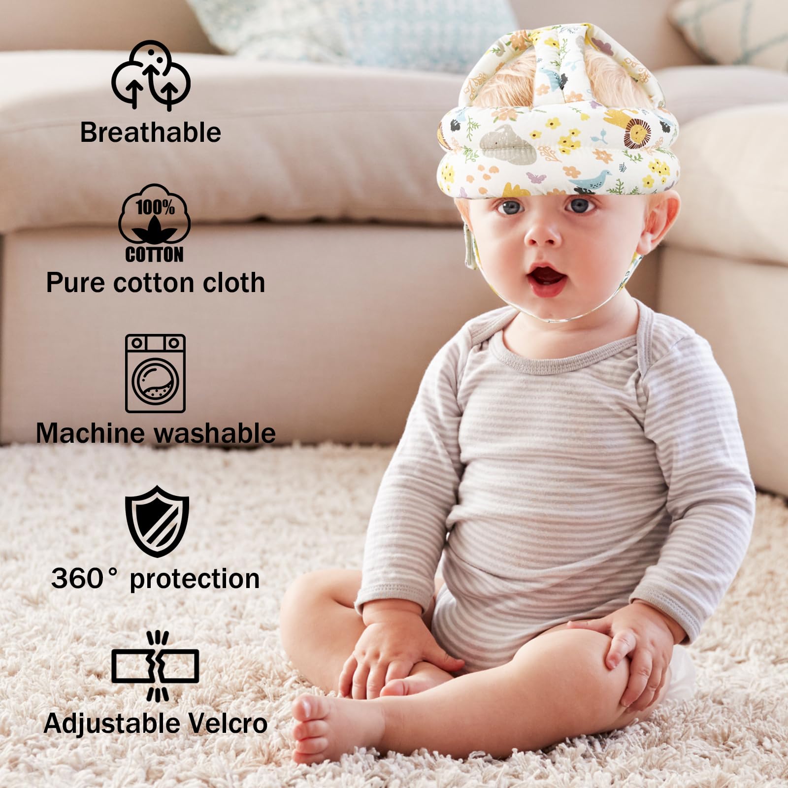 【Adjustable Size】It'll fit the baby's head with a circumference of 16.2-20 inches to suit any size of infant head,offers maximum safety with comfort for your loved kids.
