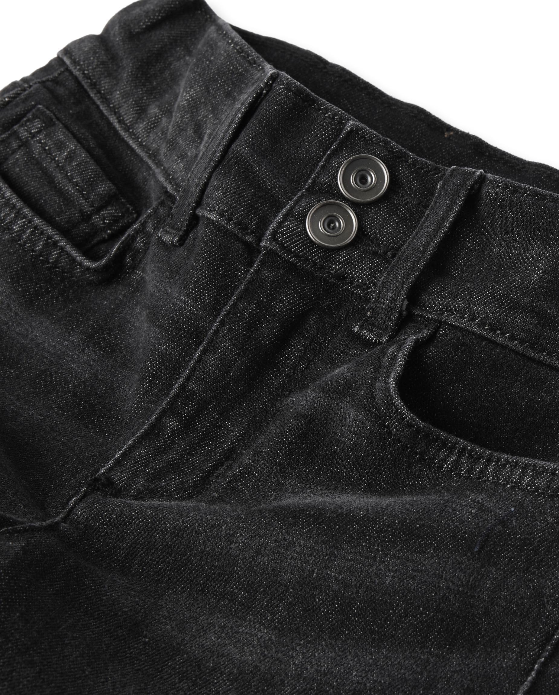 CLOSURE: Snap closure with zip fly, inner adjustable waist tabs