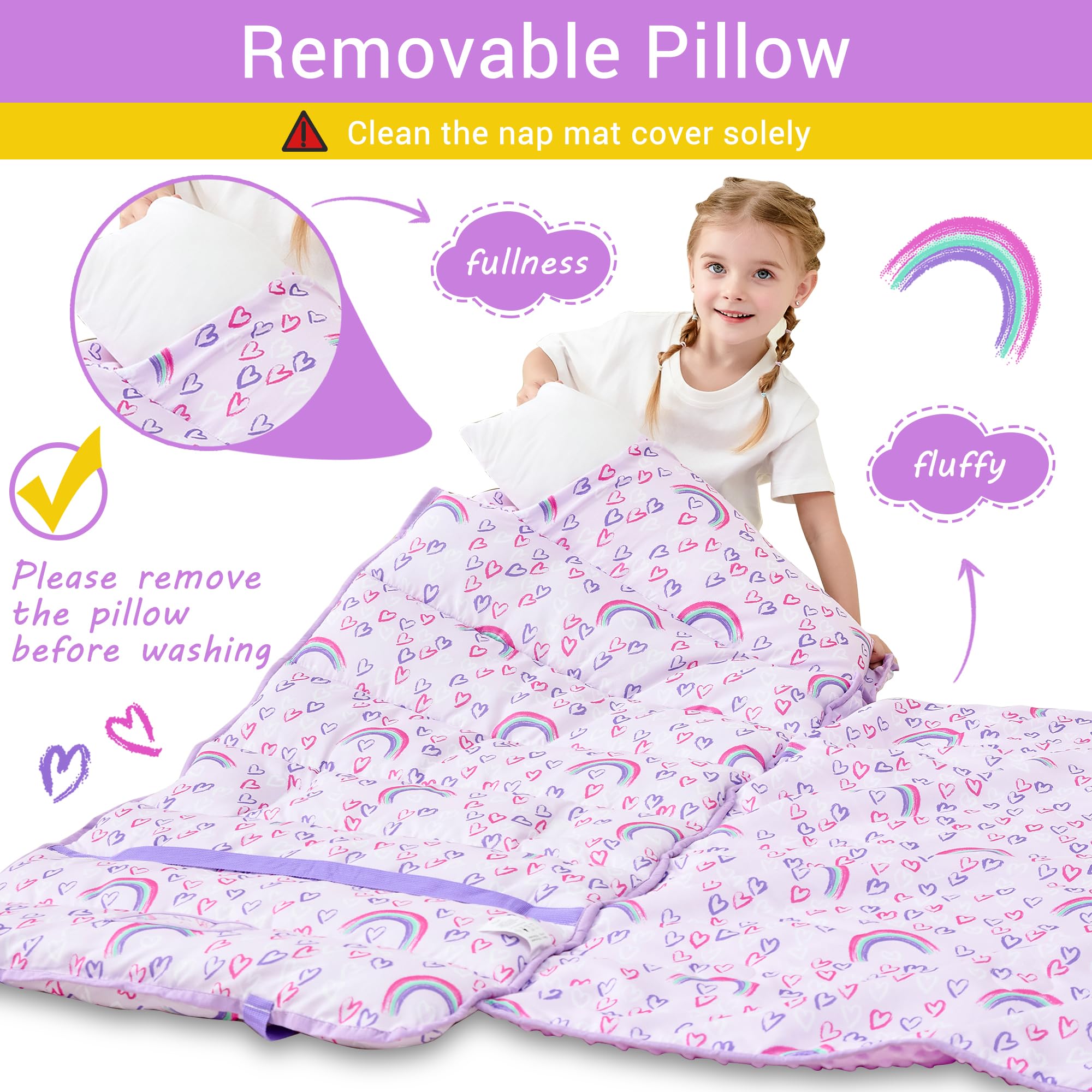 Easy Care: When accidents happen, just remove the included pillow and place your nap mat in a washer in cold water on a gentle cycle and tumble dry on low heat, do not iron, do not bleach. Our vibrant colors were made to last, so you don’t have to worry that they’ll fade after washing