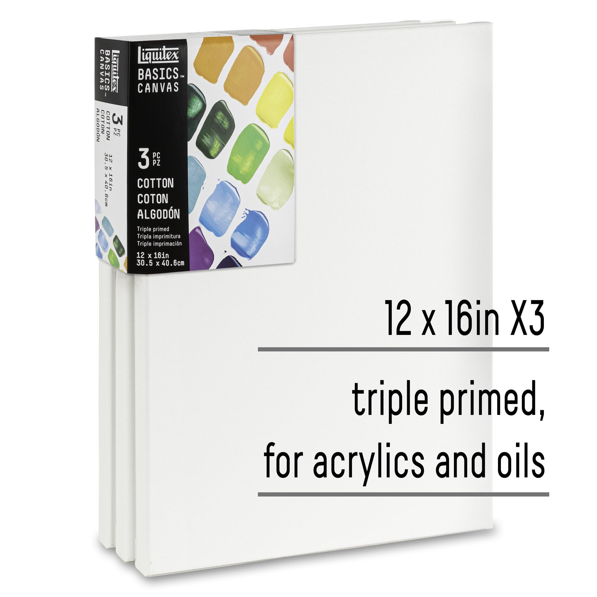 The trio pack. Put color to surface with three ready-to-go painting canvases. Archival. Acid-free. Non-toxic. No need to wait. The medium texture cotton canvas is pre-primed with a triple layer of acrylic gesso all set to receive acrylic color. Stapled at the rear, stretched on a FSC certified softwood frame.