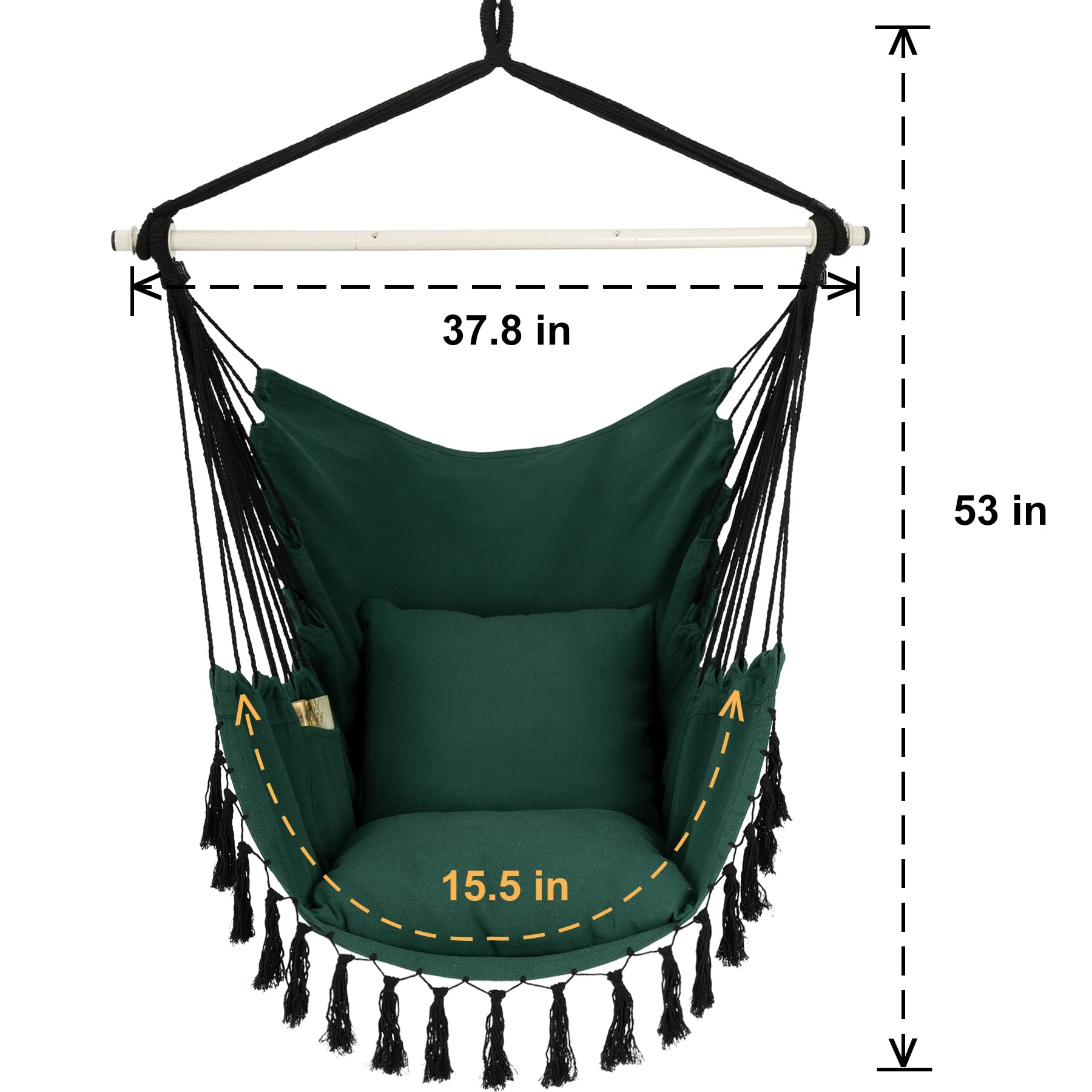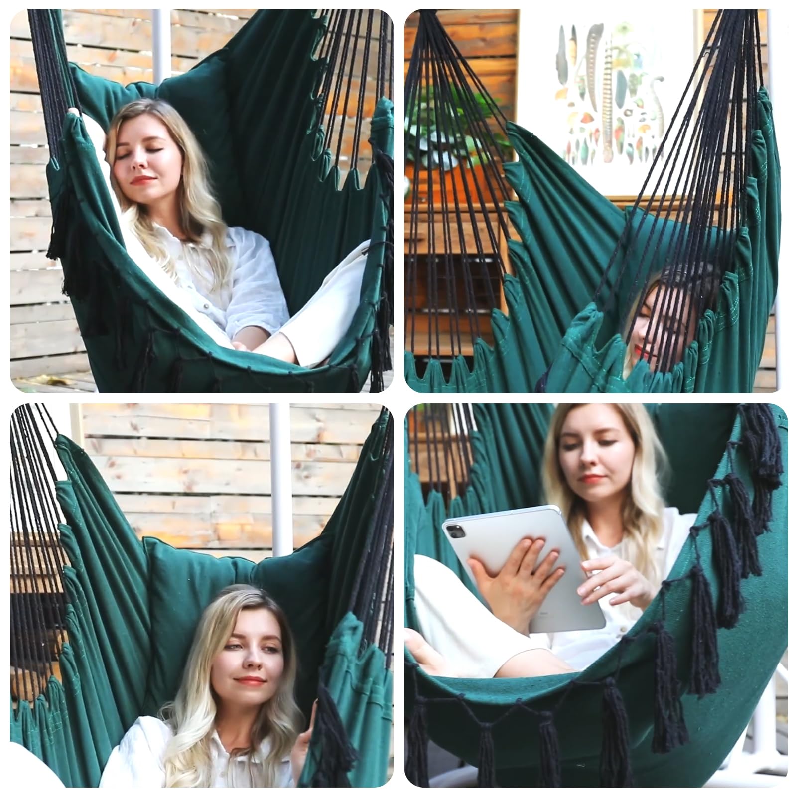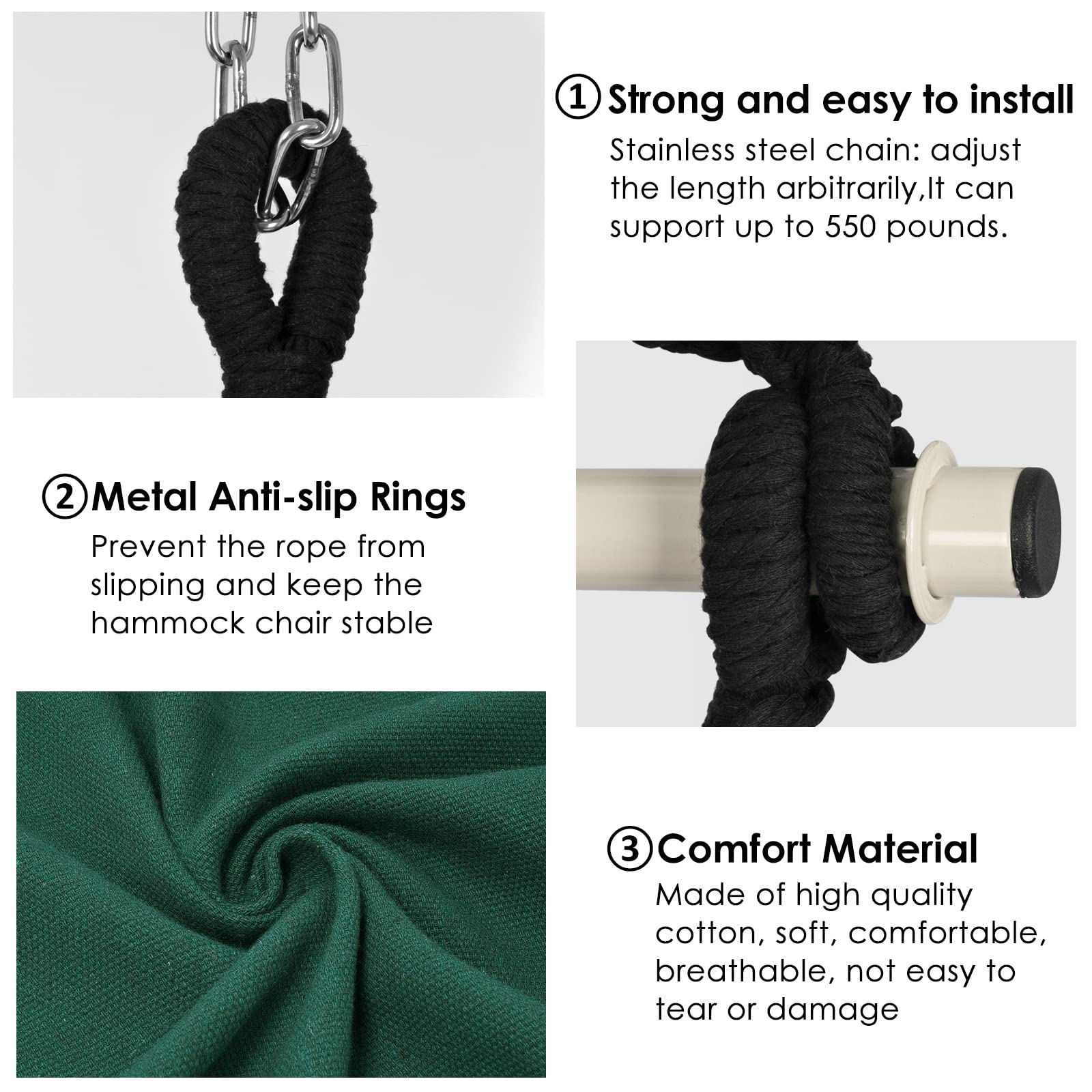 hammock chair: Safe and strong , the sturdy spreader bar makes the hammock chair more stable. The anti-slip grooves on both sides can effectively prevent the rope from sliding, and the maximum weight is up to 500 Lbs