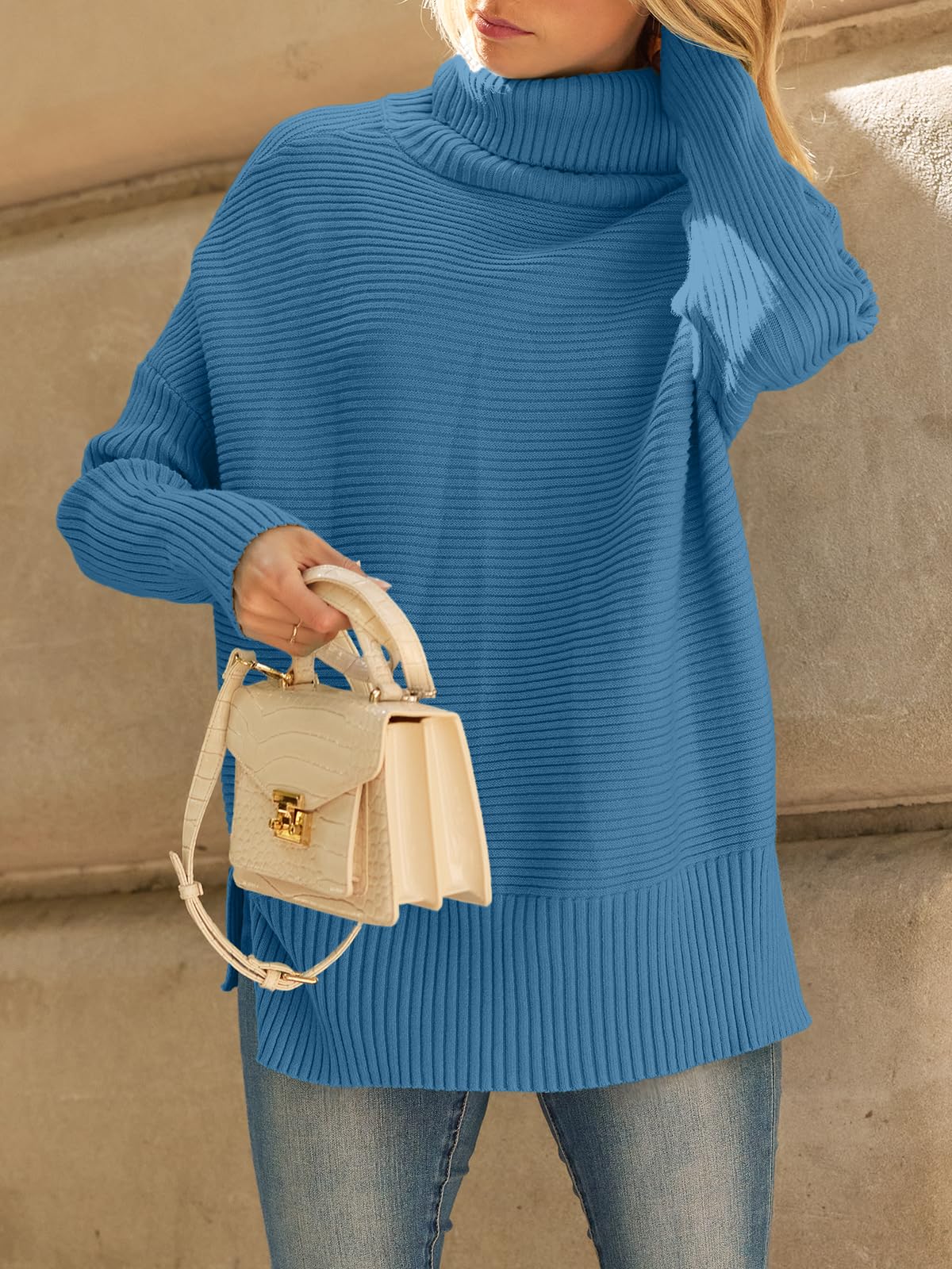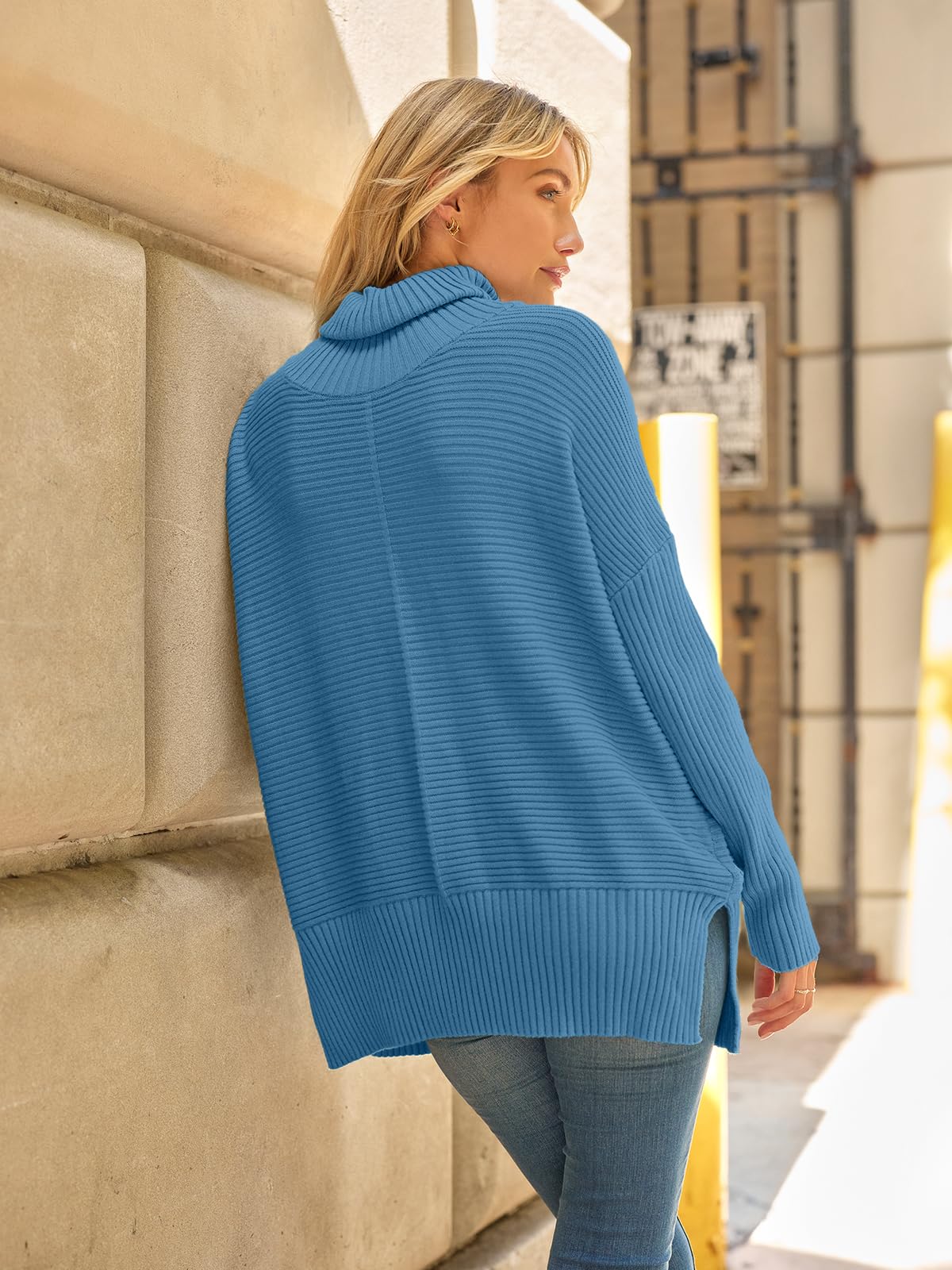 Effortless Style, Inside and Out - The timeless turtleneck and relaxed oversized silhouette create a look that's both casual and refined. This medium-weight sweater is your smart layering solution—perfect for fall days, and easily layered under a coat when it gets colder, then comfortably worn alone indoors.