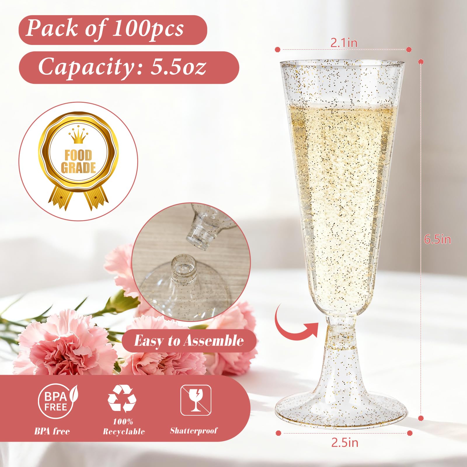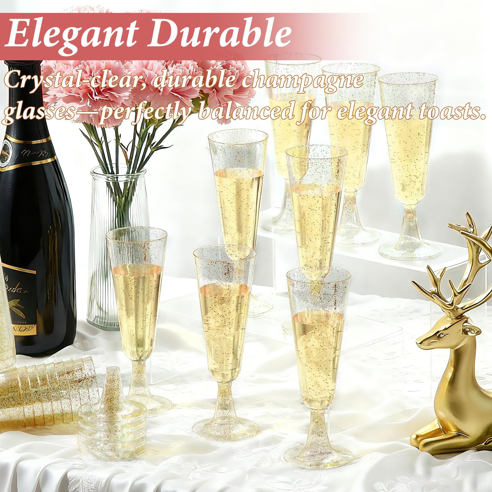 【Quick and Easy Assembly】These plastic champagne glasses are designed for quick and easy assembly, ensuring you can quickly prepare for any gathering, from small parties to large celebrations.