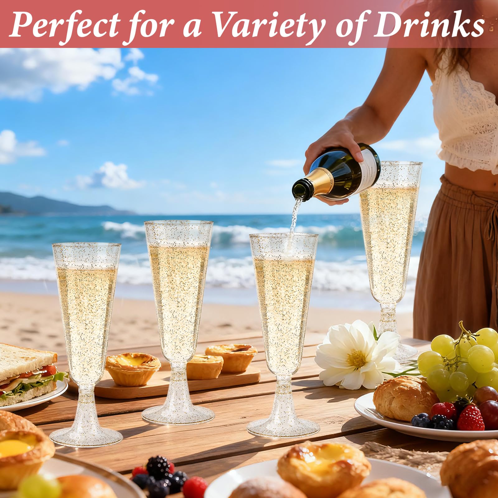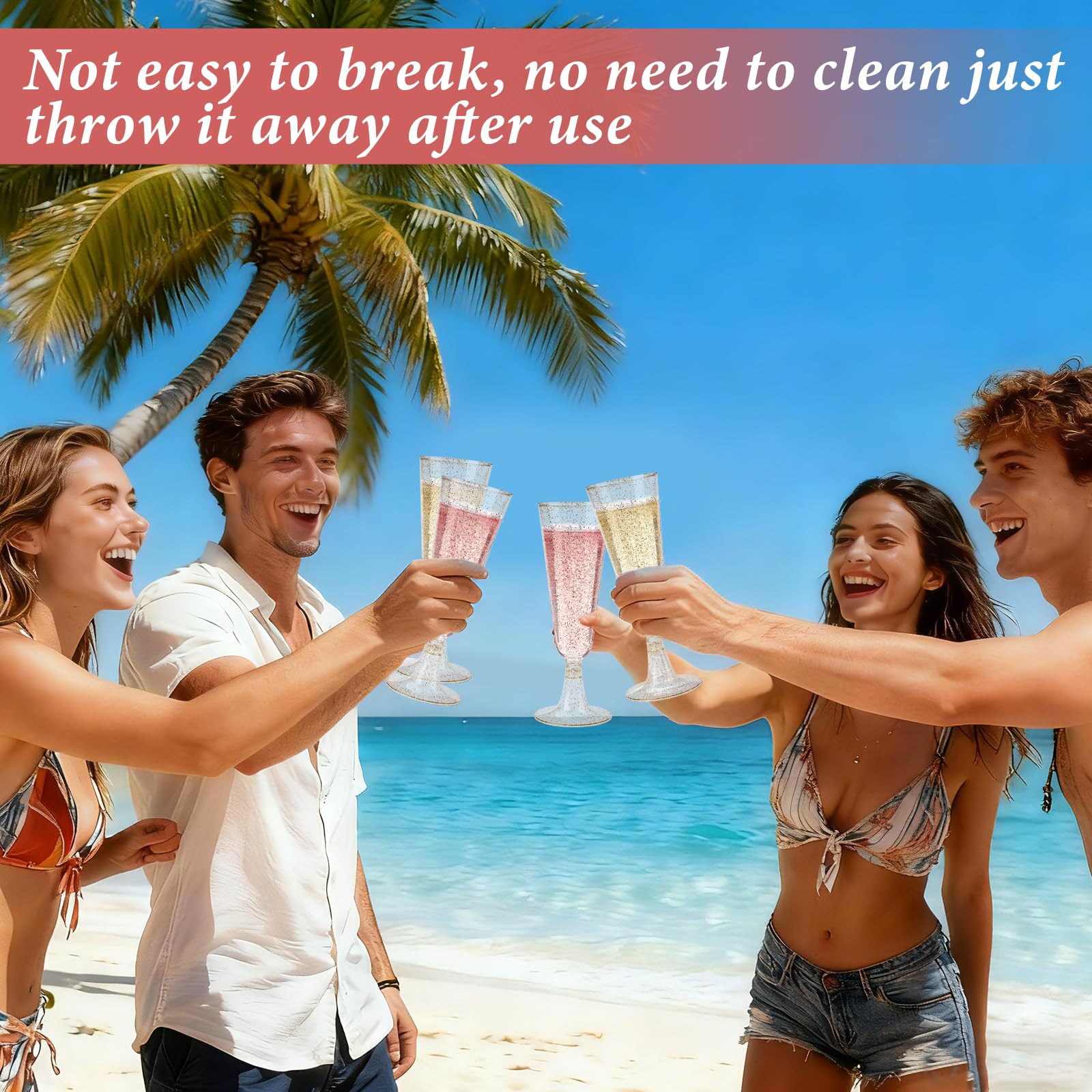 【Durable and Shatterproof Plastic】 Made from premium, shatter-resistant materials, their durable construction ensures that they won’t easily break or crack. Whether you're hosting a wedding, party, or any special gathering, these plastic champagne flutes offer a safe and stylish way to toast without worrying about accidental spills or breaks. Enjoy your festivities with peace of mind, knowing these glasses are designed to last and stand up to the demands of your event.