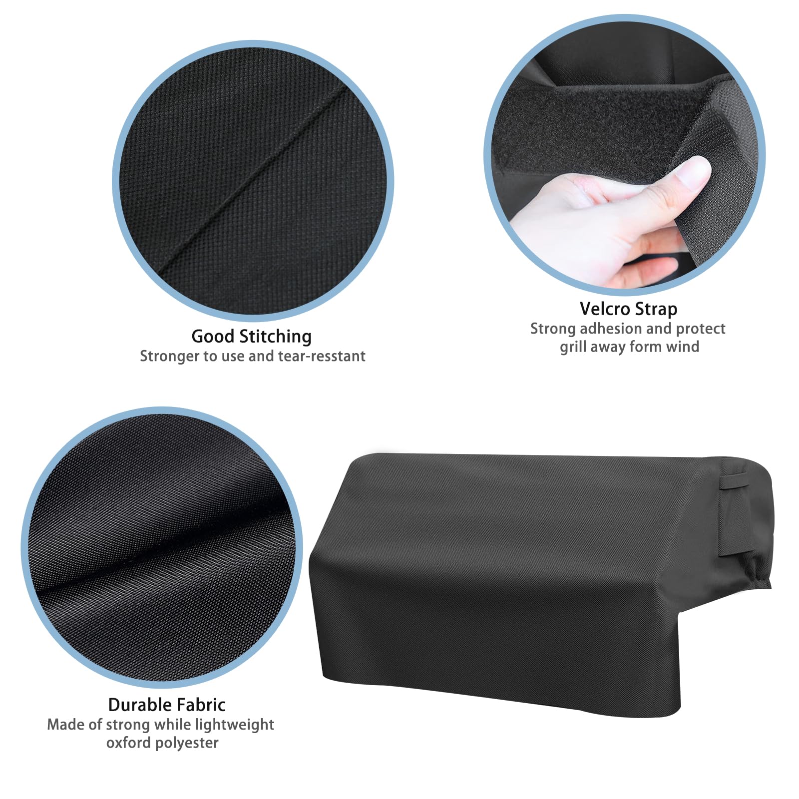 Material: The built-in cover is made of 600D high-density oxford fabric with an internal PVC coating, can protect your grill from strong winds, storms, sunlight, snow, dust, and debris, durable and long-lasting. Has good UV resistance, color fastness, waterproofing, low temperature resistance, and tear resistance functions.
