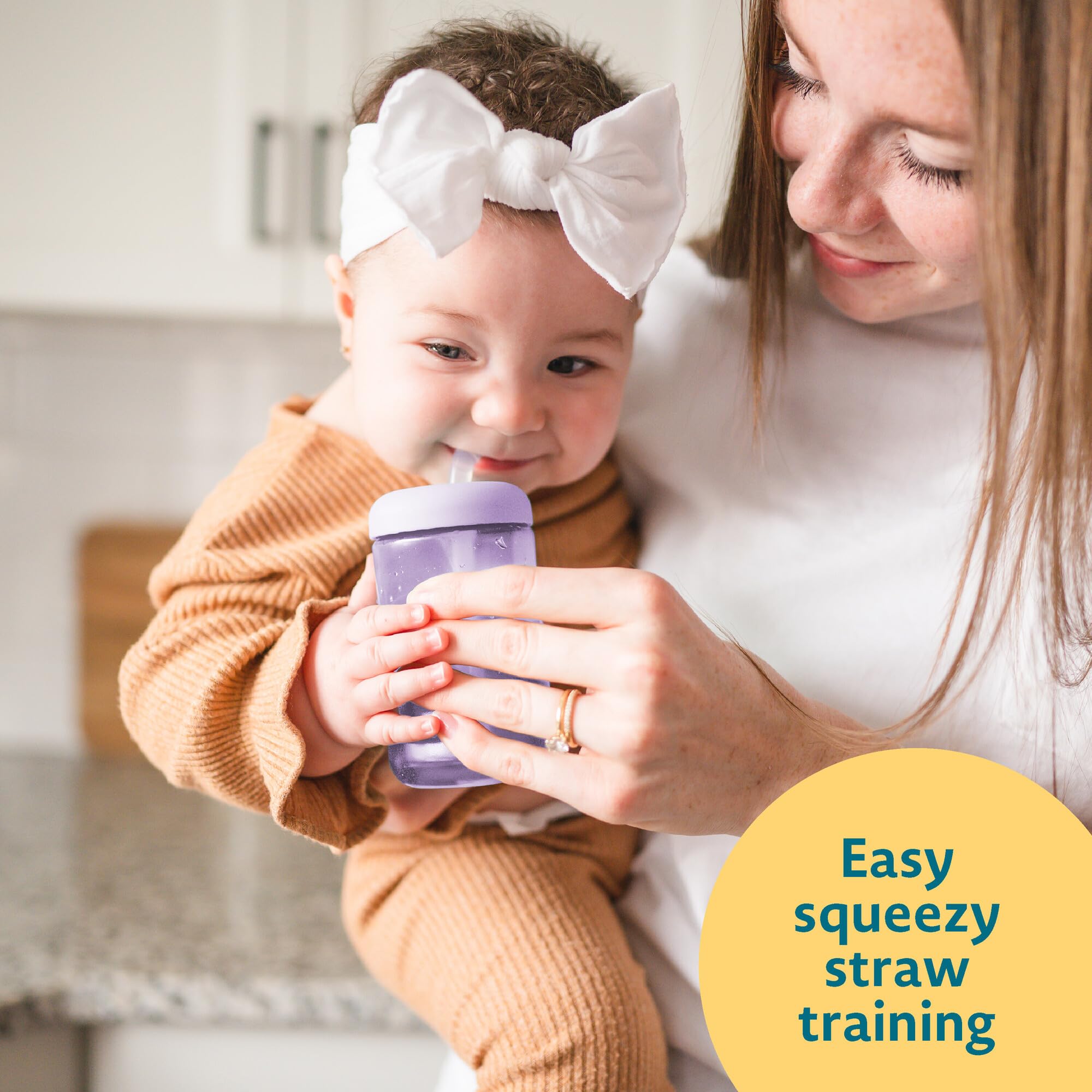 Easy Squeezy Training: You squeeze, and your little one sips through the silicone straw that features a unique valve that controls the flow of their favorite beverage (Note: Cup colors may vary)