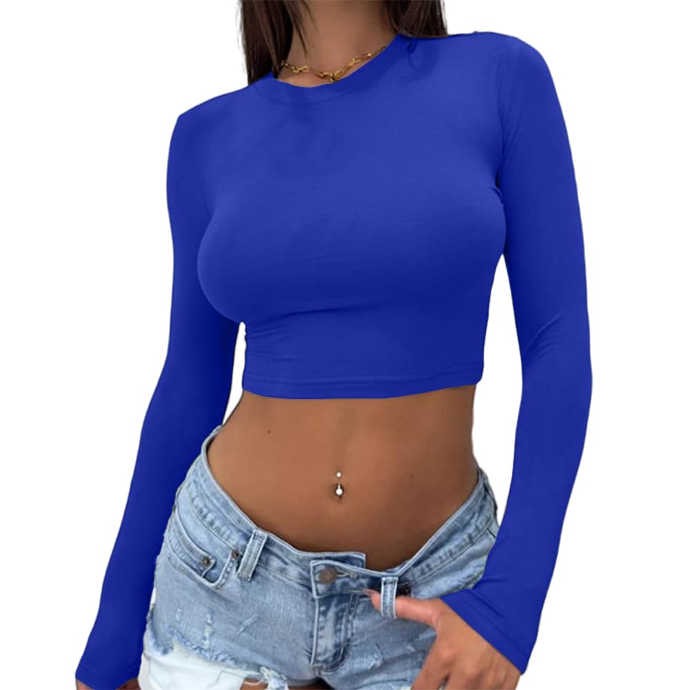 Long sleeve crop top made of stretch fabric,soft and comfortable fit,suitable for any occasion