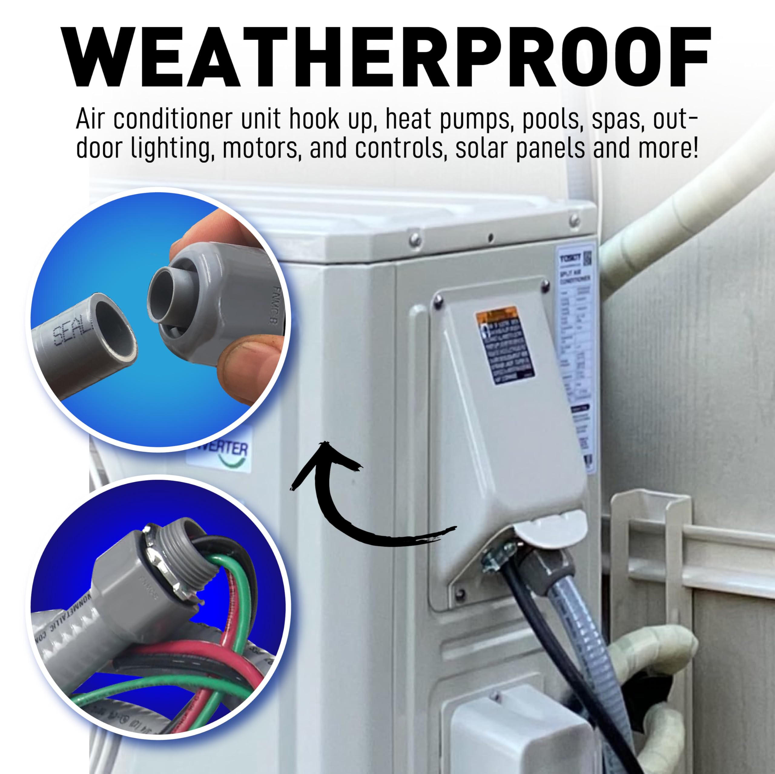 Applications: Air condition unit hook up; heat pumps; pools; spas; outdoor lighting; motors and controls; solar panels