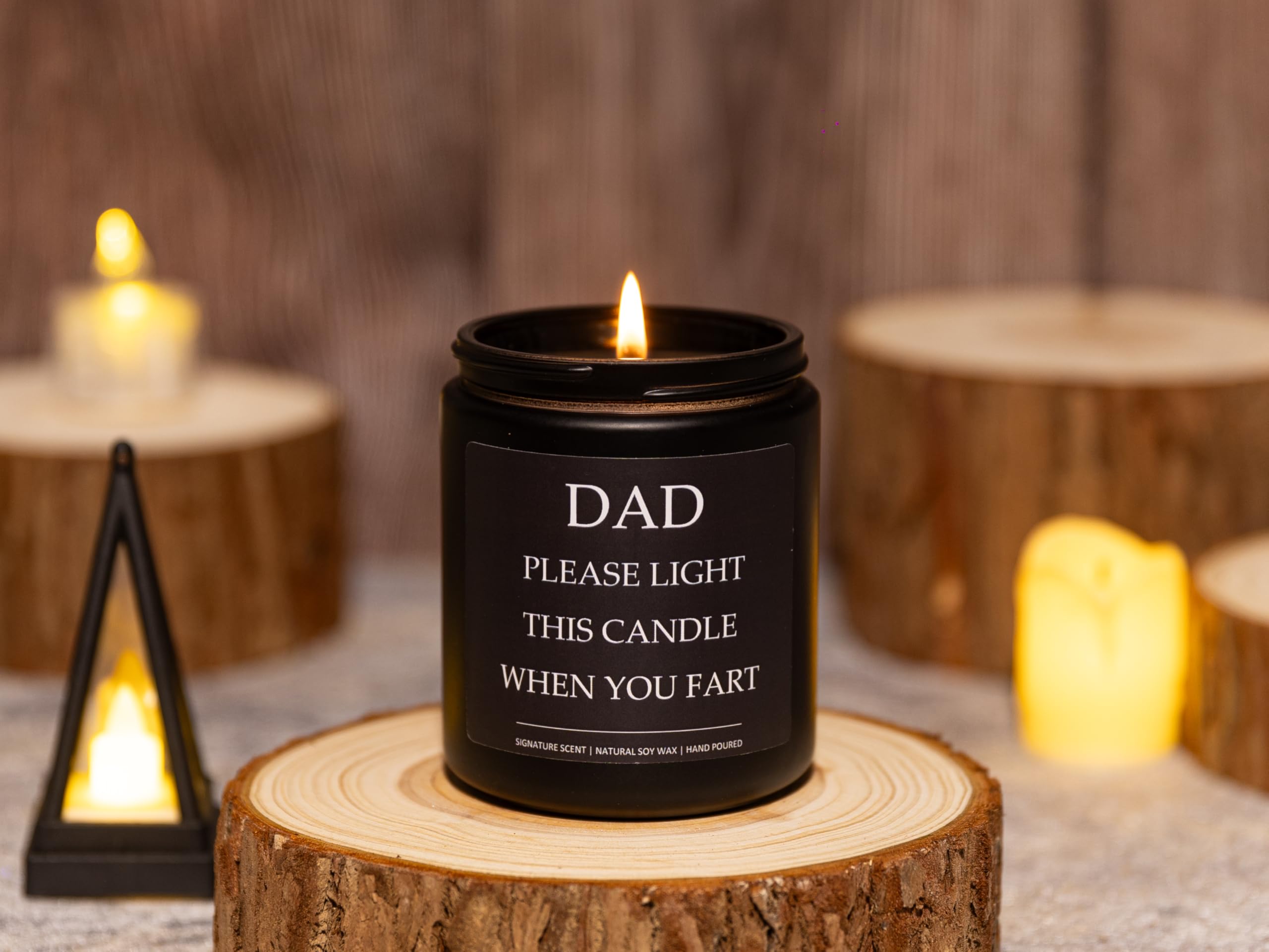 Dad Birthday Gift - This sandalwood candle has a humorous quote on it: Dad, please light this candle. This is a great, cool gift for dads from kids. Plus, great gifts show your appreciation and love for the dad who has everything.
