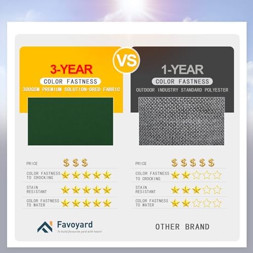 3-year Color Fastness - Our patio chair cushions adopt 300GSM High Density polyester fabric, thanks to the superb coloring technology, we proudly say the fading resistant is 20 times that of ordinary products, Favoyard outdoor seat cushion for patio furniture is a perfect decor in garden, patio, beach and etc.