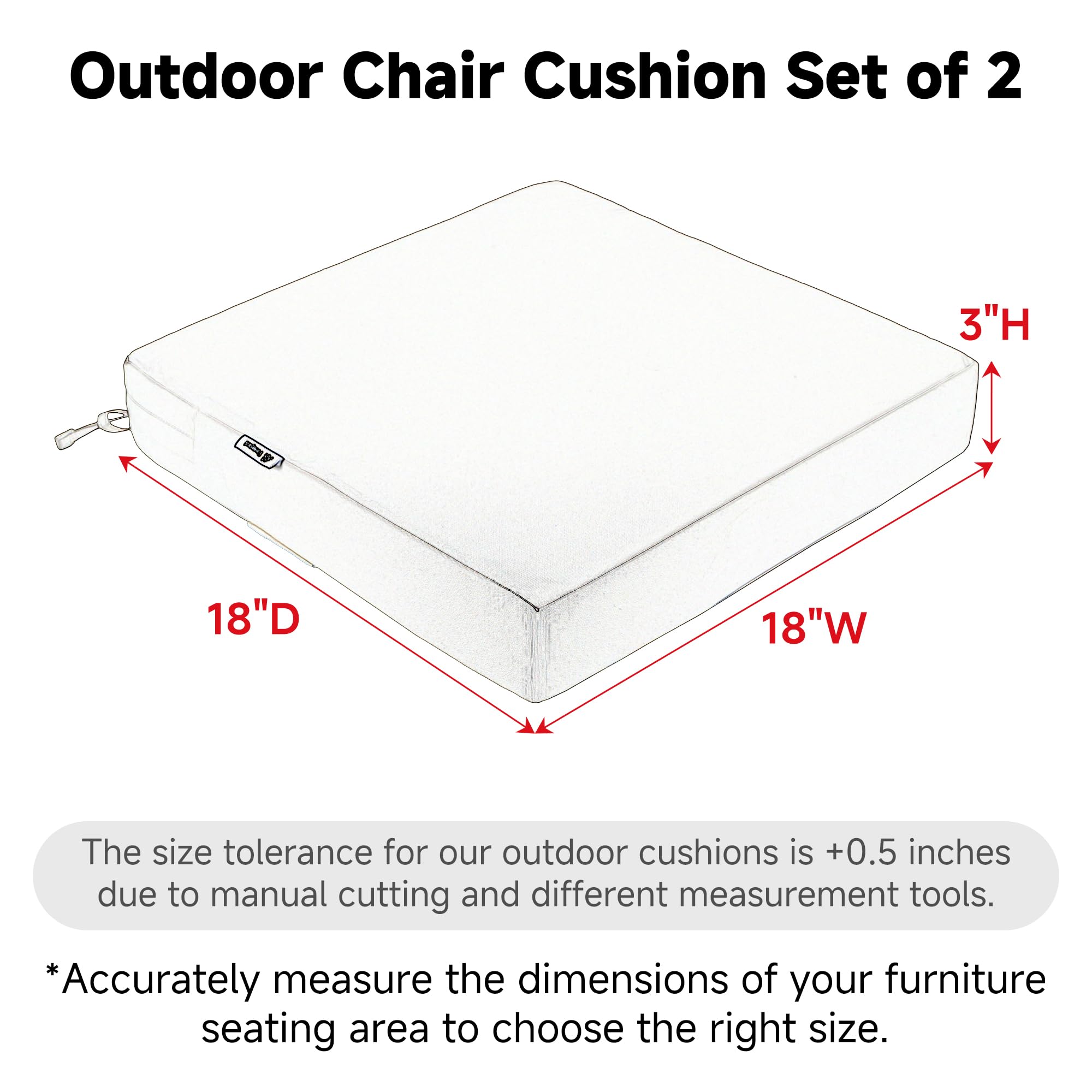 Size Selection - Including 2 outdoor chair cushions measuring 18” W x 18” D x 3” T ( The size description is only for the cushion size, accurately measuring the dimensions of your furniture's seating area before purchasing, make sure the cushion size fits your furniture ).