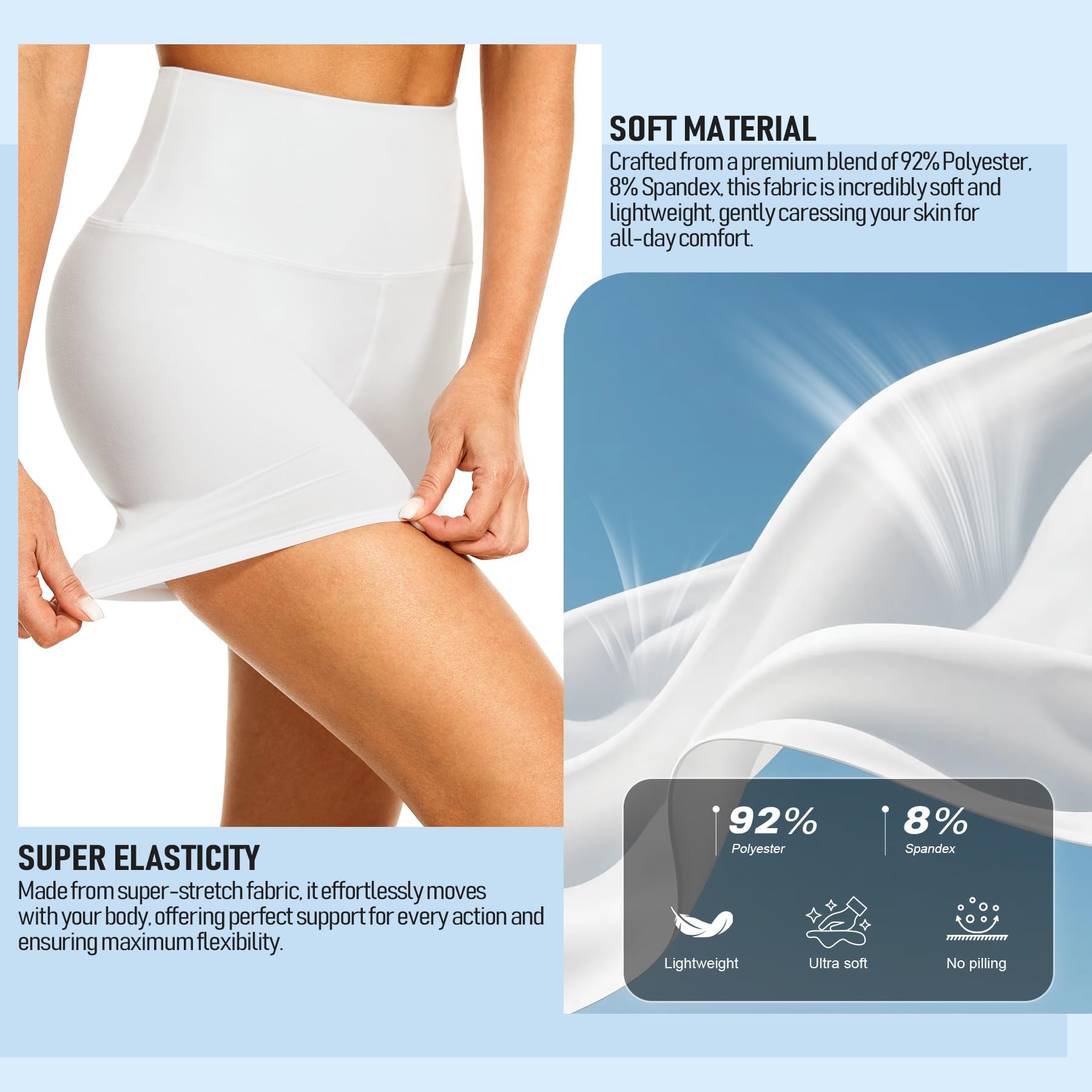 Soft & Comfortable Fabric:Crafted from a premium blend of 92% polyester and 8% spandex, our high-waisted spandex shorts feel like a second skin. They offer a soft, breathable fit that’s perfect for long hours of wear, whether you're working out, running errands, or lounging. Enjoy the all-day comfort of a fabric that moves with you