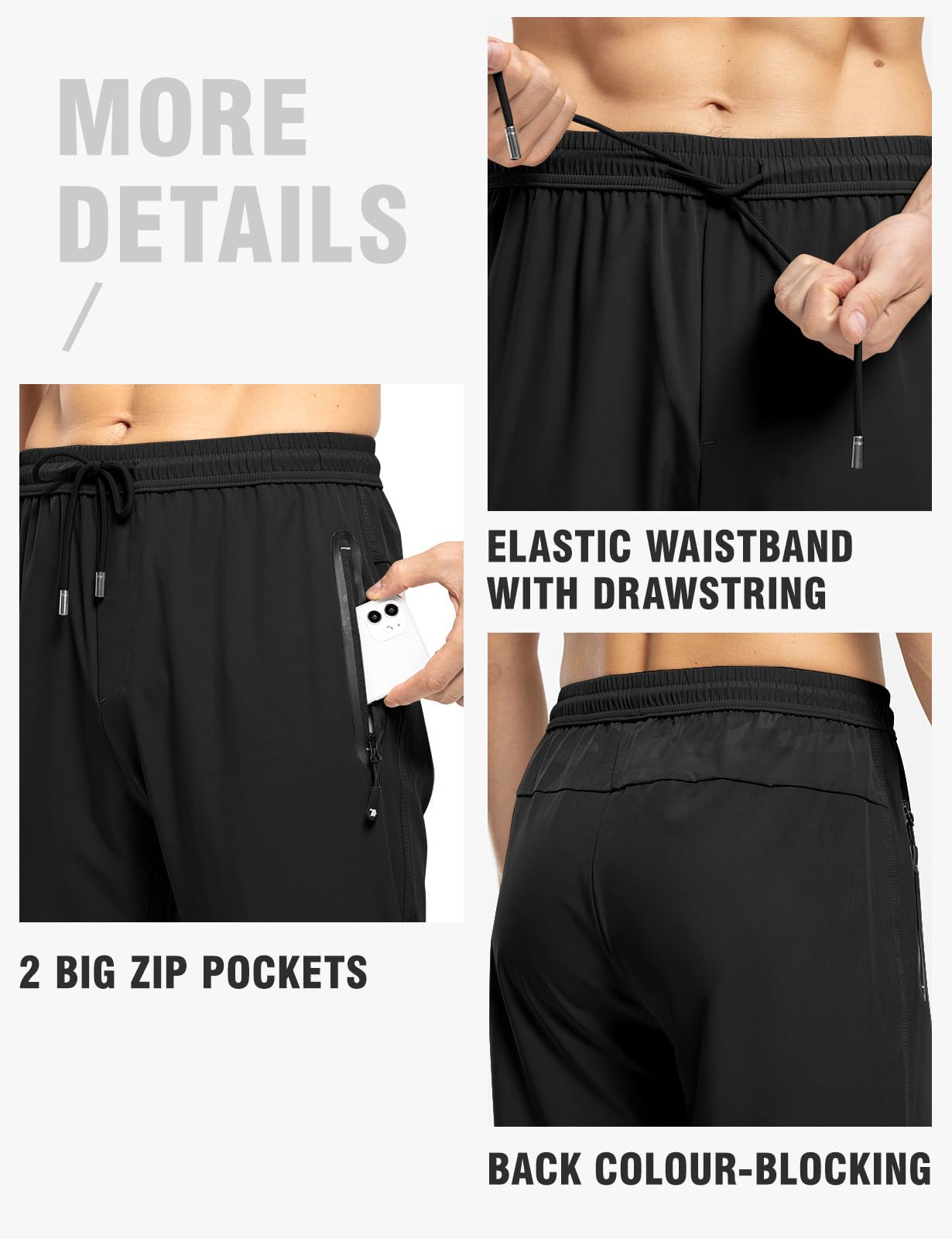 Zipper Pockets: Two large security zipper pockets securely hold your 5.5" phones, wallets and keys, ect