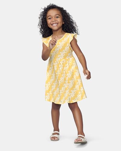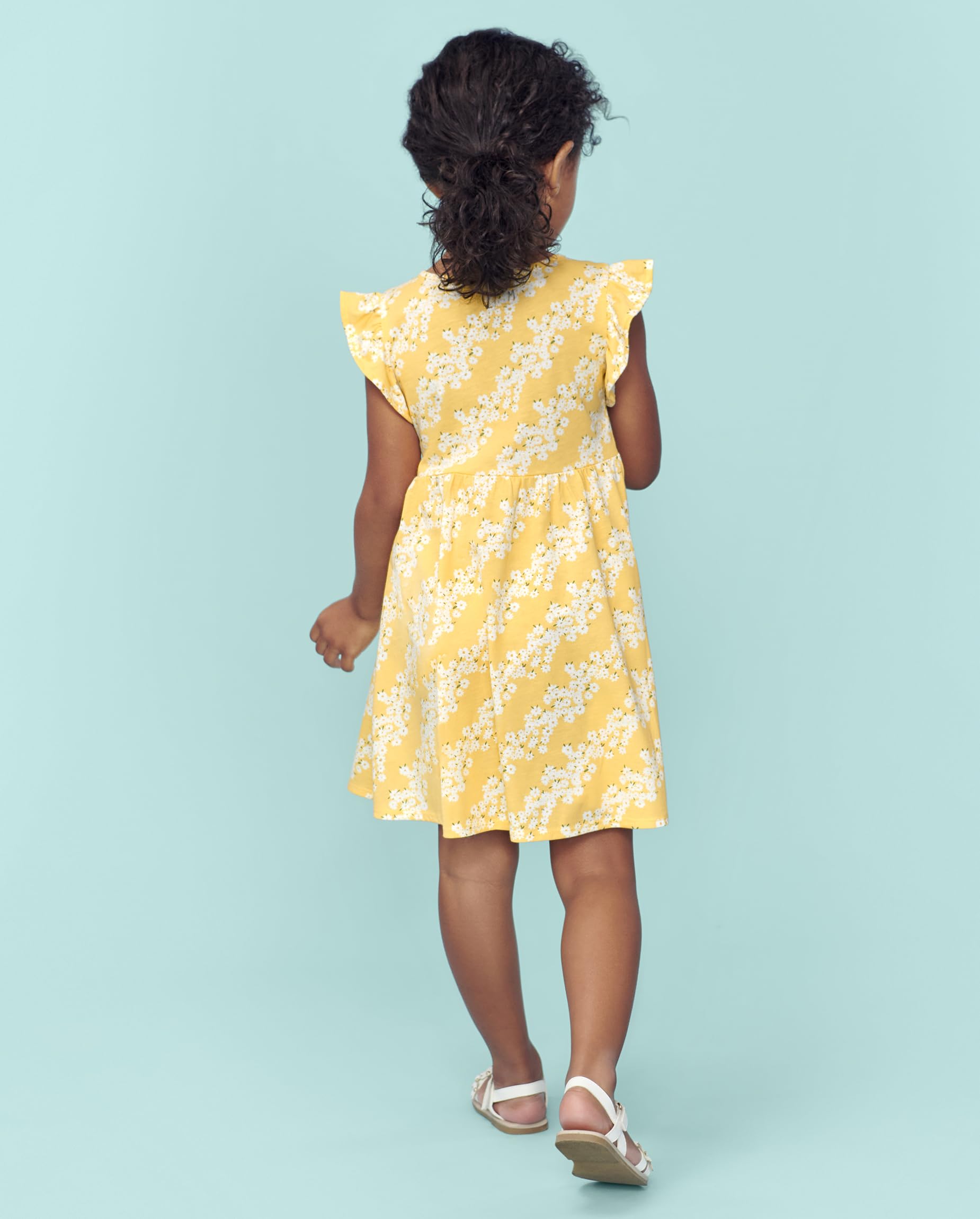 DESIGN — Features short flutter sleeves, above-the-knee length and allover floral print