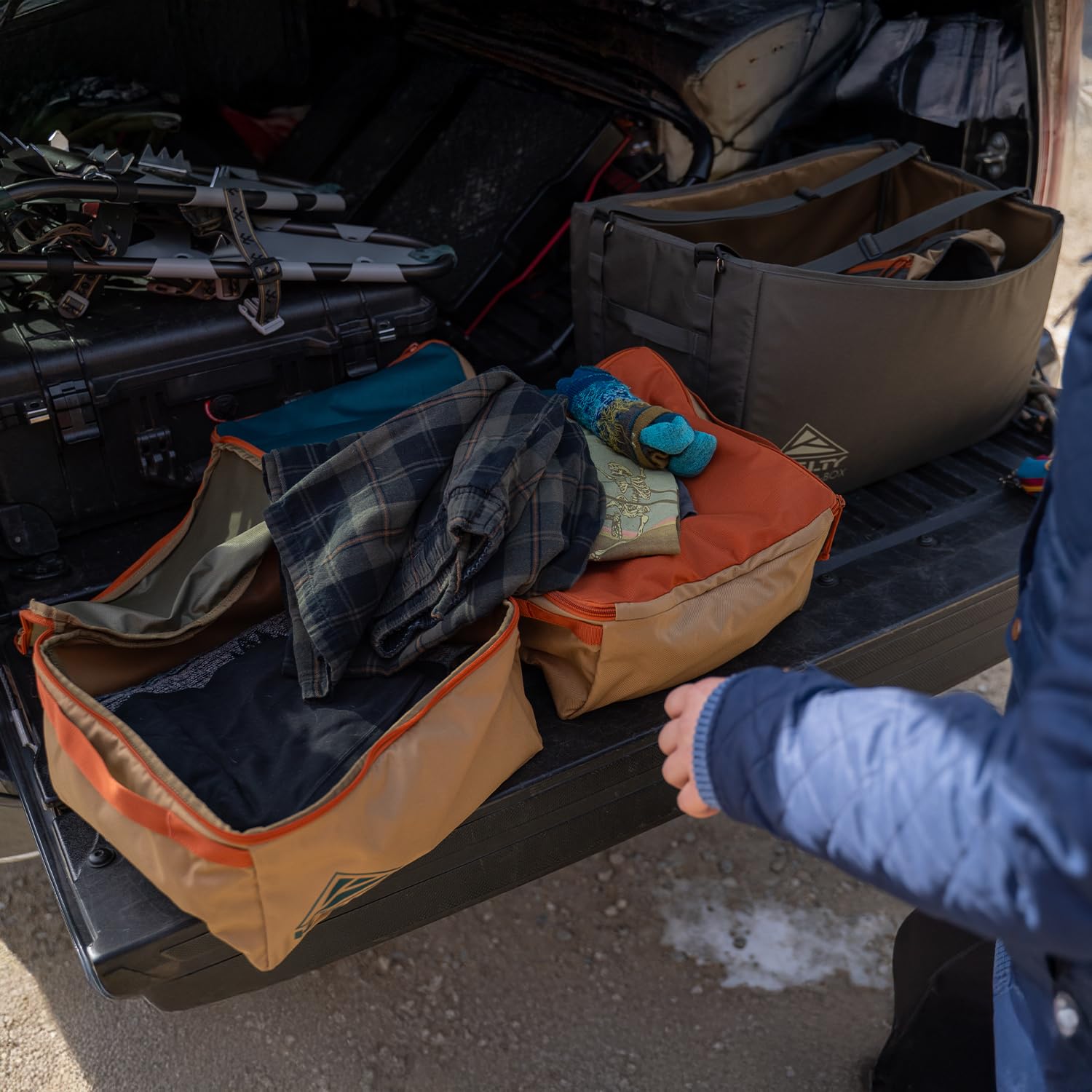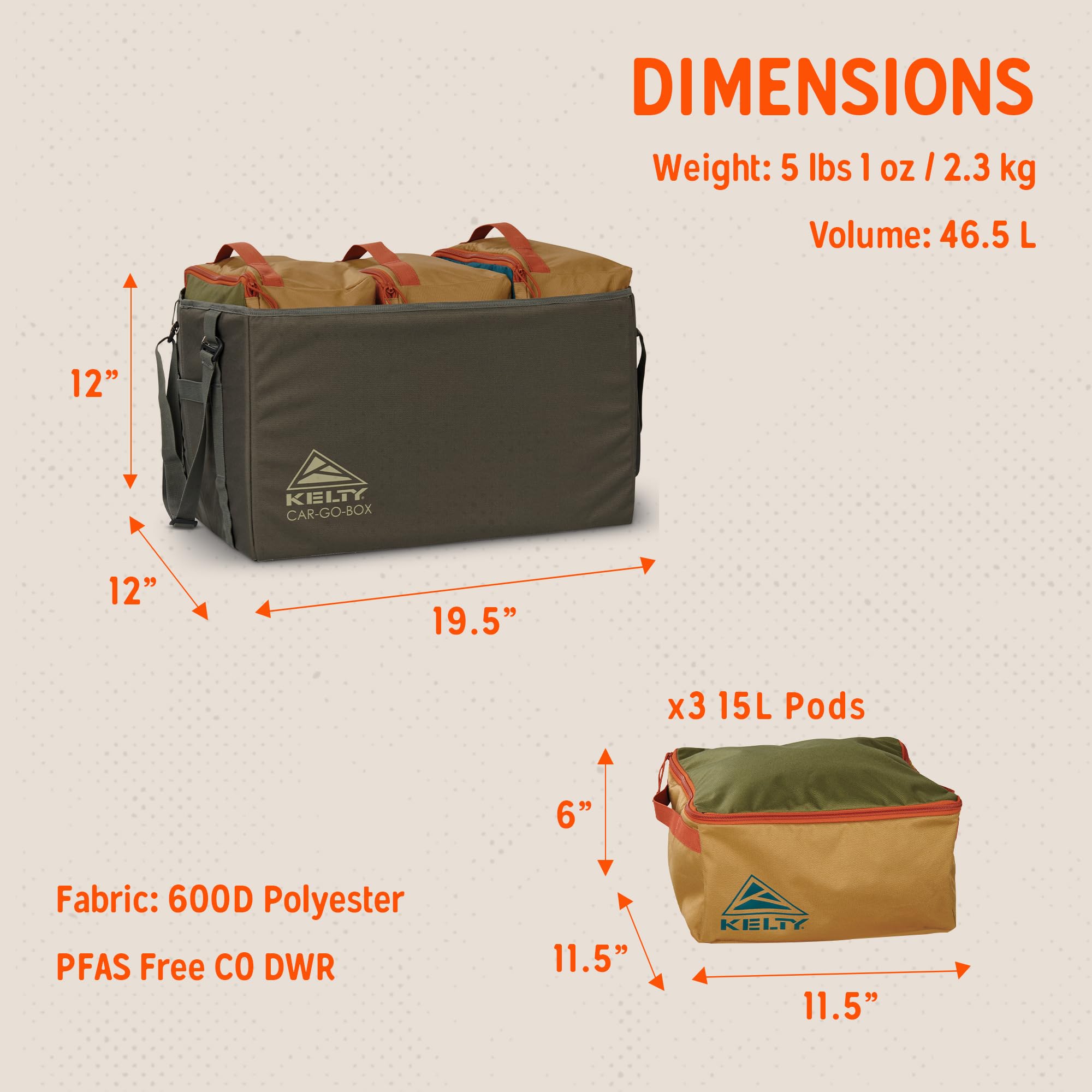 Spend less time packing, and more time doing. The CAR-GO-BOX keeps you organized and moving in every adventure- whether you're hiking, camping, biking, climbing, road tripping, or mixing and matching. With three color-coded storage pods and a structured folding case, you can sort it, pack it, grab it, and get after it without missing a beat. Just headed out on a quick adventure? The folding case doubles as it's own haul bag, or grab a zippered storage pod and hit the road. Three color coded storage pods & reinforced folding case for organization on the go Structured folding case keeps pods secure when on the move or can be used alone as a larger case Color coded, collapsible zip top pods provide easy access to contents Adjustable straps can be configured as compression to hold pods in place or carry straps for the walk back to the van. Organize your camping gear, MTB gear, climbing gear - choose your adventure! Rugged 600d fabrics will last as long as your adventures do PFAS-free DWR
