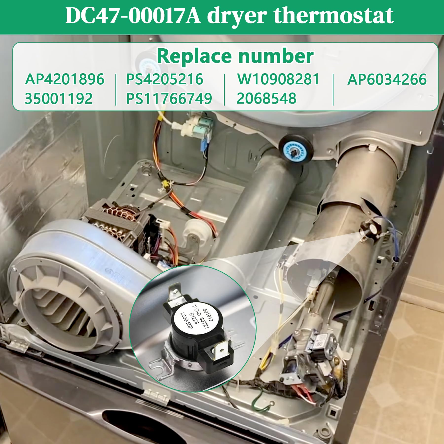Replacement Part Number : DC47-00017A Dryer Cap Thermostat Replacement Number AP4201896, PS4205216, W10908281, AP6034266, 35001192, PS11766749 2068548