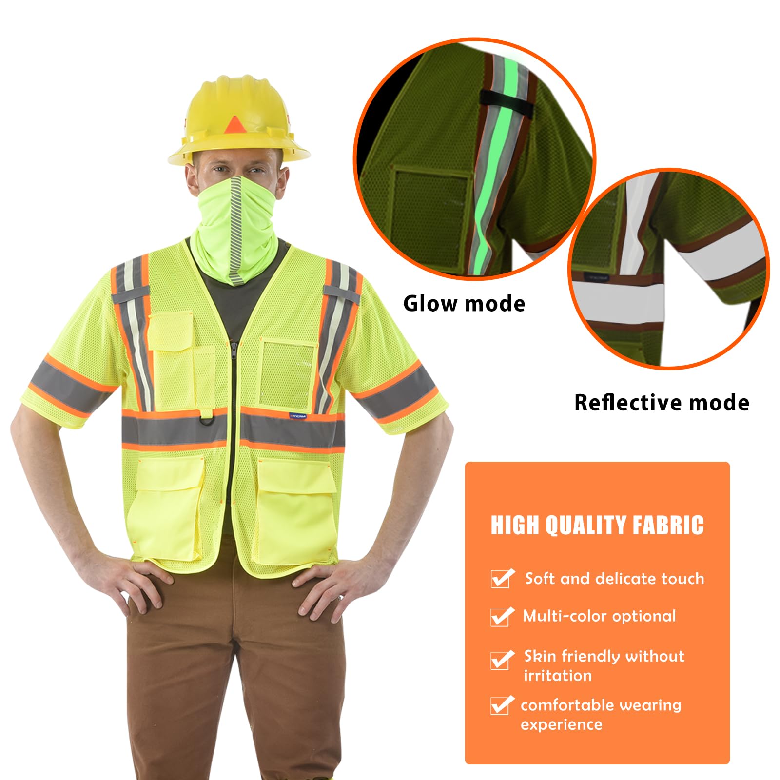 ✅【Glow function】The safety vest is equipped with a Glow strip, which emits a fluorescent light source in a pitch black environment without light. Reflective and luminous night makes you safer.