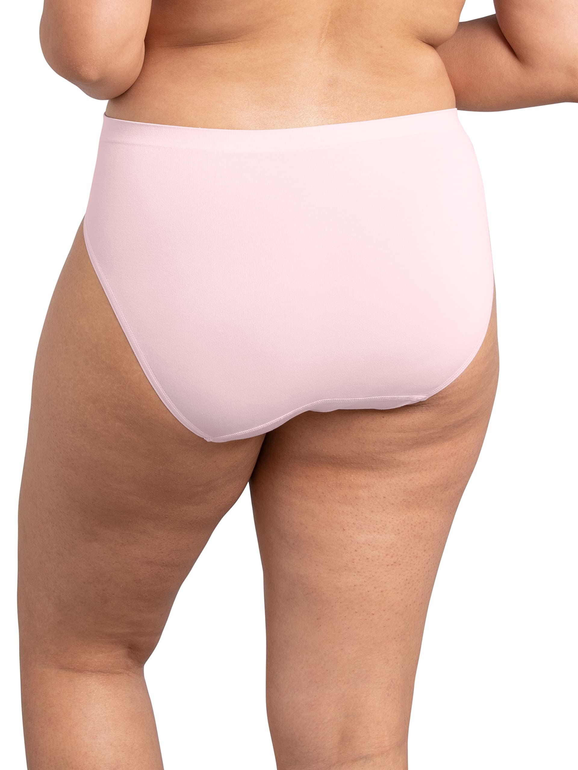 Description Say goodbye to panty lines and irritating seams with the Fruit of the Loom® seamless collection. These panties offer a luxuriously soft, buttery feel while delivering exceptional stretch that moves effortlessly with your body. Designed to contour perfectly to your shape, they provide a smooth, barely-there fit for ultimate comfort. The sleek, flexible waistband lays flat for a seamless finish under clothing, and like all Fruit of the Loom® panties, this collection is tag-free to ensure extra softness and irritation-free wear. Solids are 100% Premium Nylon. Jacquard Prints are 53% Nylon, 47% Polyester. Actual colors and prints may vary.