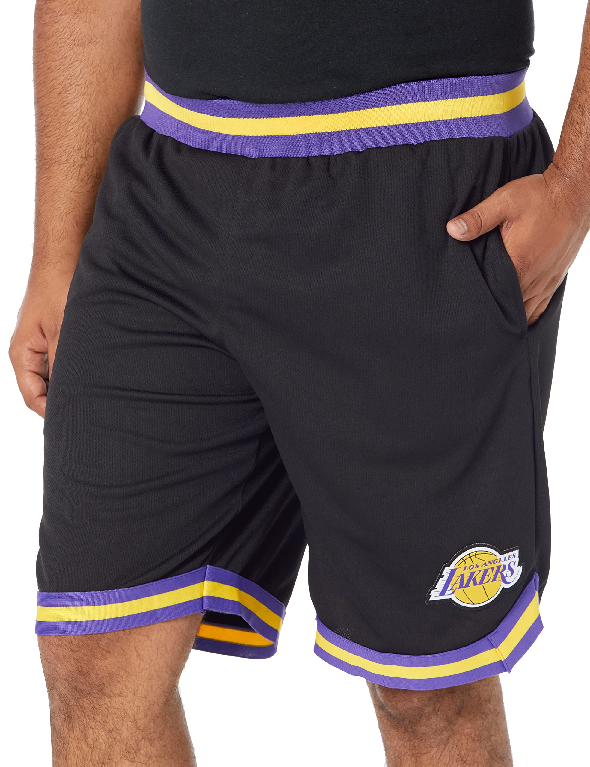 FUNCTIONAL AND STYLISH DESIGN: A black body creates bold color contrasts with NBA team logos. Functional additions include two side pockets and a loose fit for unrestricted movement.