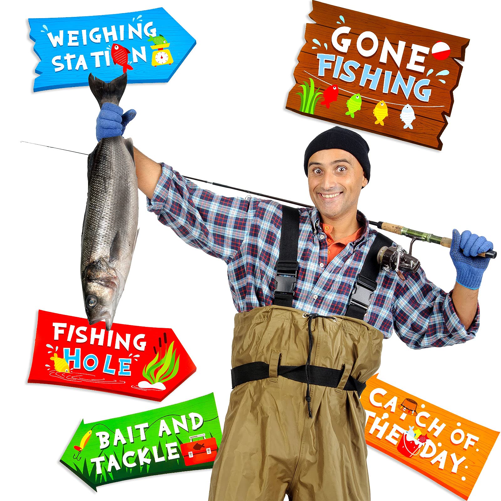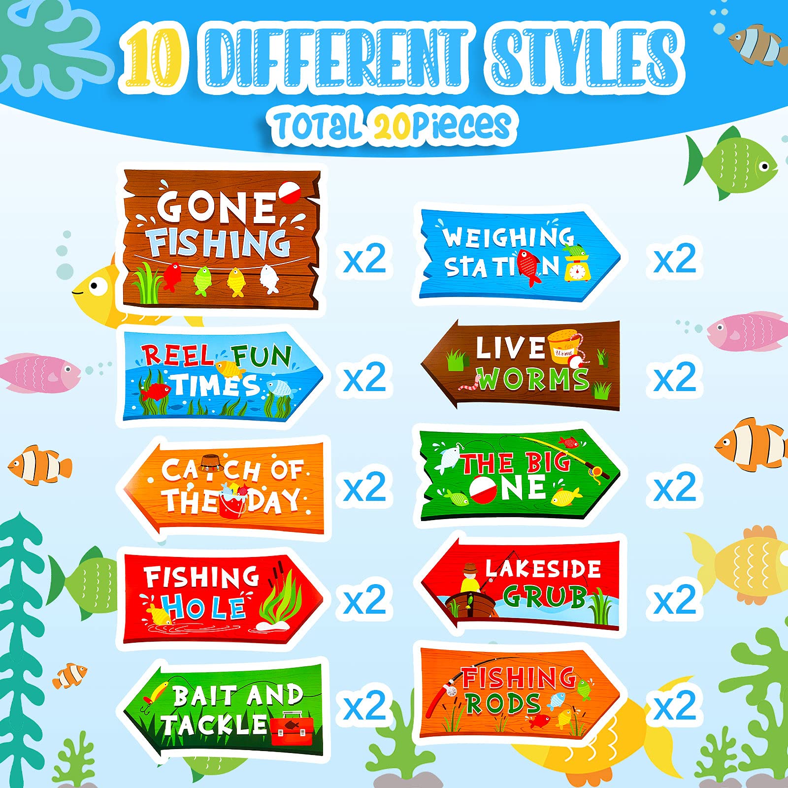 Sufficient quantity: there are 20 pieces of fishing party signs decors in 10 different styles, enough to meet your needs for party decorations; You can also share them with your family and friends to have a happy day together (product not include holder)