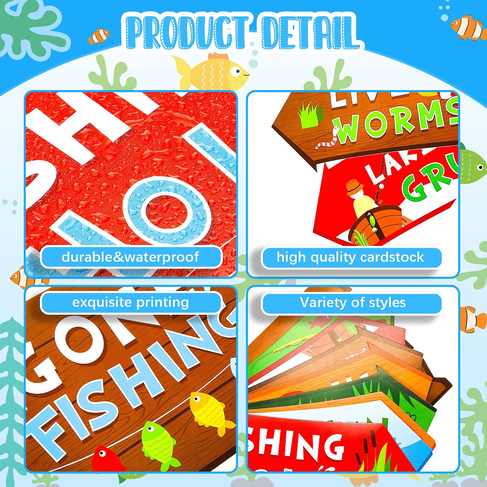 Stylish Design: these fishing party supplies are printed with assorted fishing theme signs, like fish, fish float, fishing rod, etc., the words in big fonts are easy and clear for you to notice and read; The bright colors of yard sign can adorn your house and convey the pleasant party atmosphere effectively